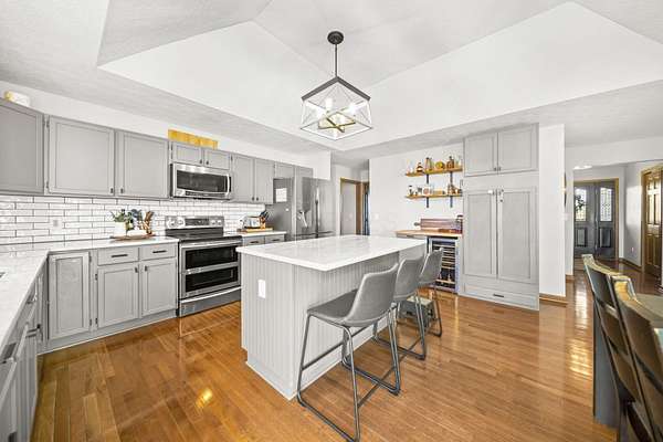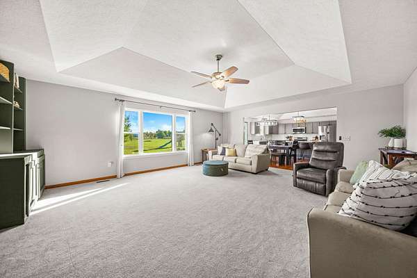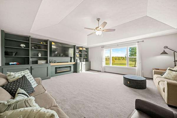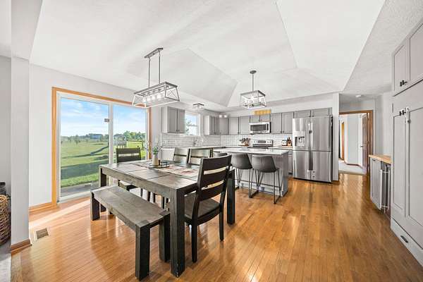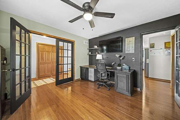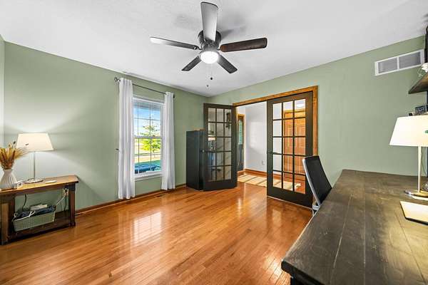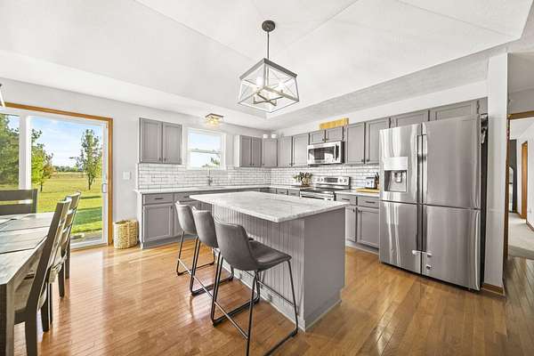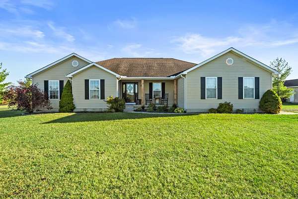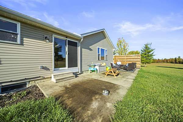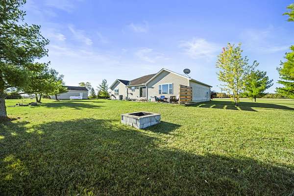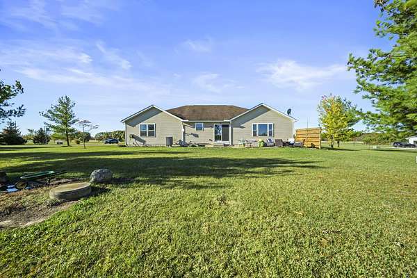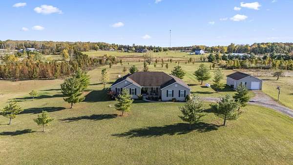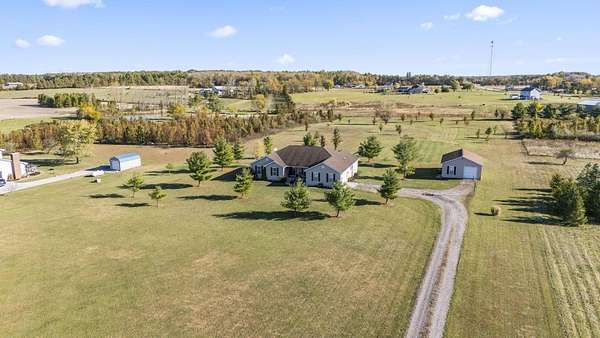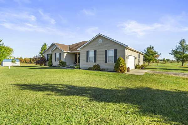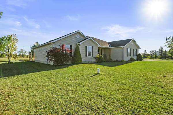 Welcome to this beautiful 3 bed, 2 bath American Heritage custom built ranch! This property is situated on 5 acres just minutes away from Honda & Route 33. Home features gorgeous hardwood flooring in the foyer, office/dining, and kitchen. Spacious great room with new built-in cabinets, shelving, electric fireplace & tray ceiling. Large kitchen w/ granite countertops, SS appliances, island, subway tile, reverse osmosis water filter, new pantry/trash cabinets, & eat-in space. Doors added to office w/built in desk. First floor laundry/mud room updated w/new flooring, cabinetry, and bench. Primary bedroom right off the kitchen w/walk-in closet & en-suite. Primary bath features soaking tub, shower stall, granite countertops, laminate flooring, & linen closet. You will find the other two guest bedrooms and bathroom w/new tile flooring at the other end of the home. Spacious lower level partially finished with laminate flooring and black painted ceiling. Other features include a covered porch w/new wood posts, patio w/new privacy fence, & 24x32 outbuilding, & all new front landscaping. Complete list of updates found in documents.
