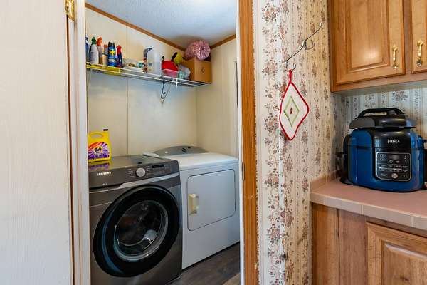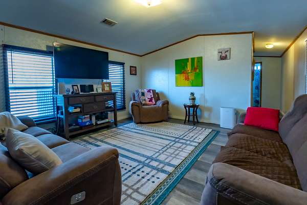 Welcome to this exceptional 4.55-acre corner property offering space, privacy, and versatility. Fully fenced and featuring asphalt road frontage on two sides, this property provides easy access while still giving you that peaceful country feel. The land is improved with an absolutely gorgeous singlewide manufactured home that has been well cared for and thoughtfully set up for comfort and entertaining. Enjoy your mornings on the beautiful covered front patio and unwind in the evenings on the spacious back deck overlooking your acreage. In addition to the main home, the property includes a two-car carport and a newly constructed 510 sq. ft. apartment built in 2025. This fully equipped apartment features a kitchen, bathroom, laundry room, and private bedroom -- making it ideal for in-laws, guests, or even potential rental income. With room to grow, plenty of parking, and multi-generational living potential, this property offers flexibility that's hard to find. If you're looking for acreage with improvements already in place, this one is ready to go. ?? Schedule your private showing today.