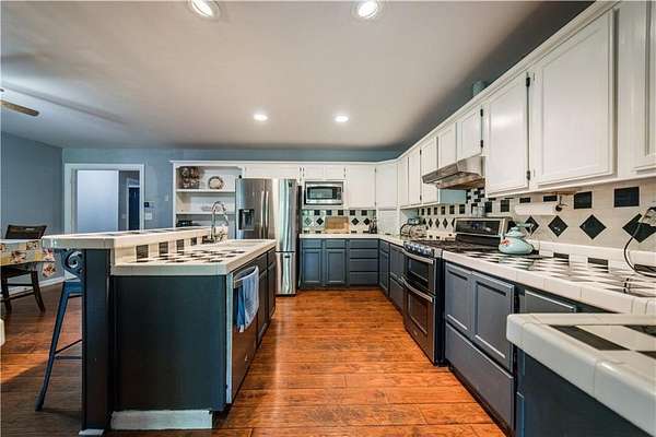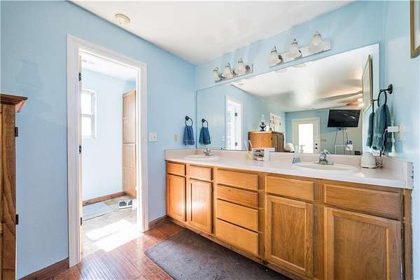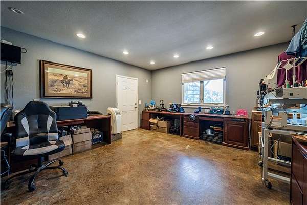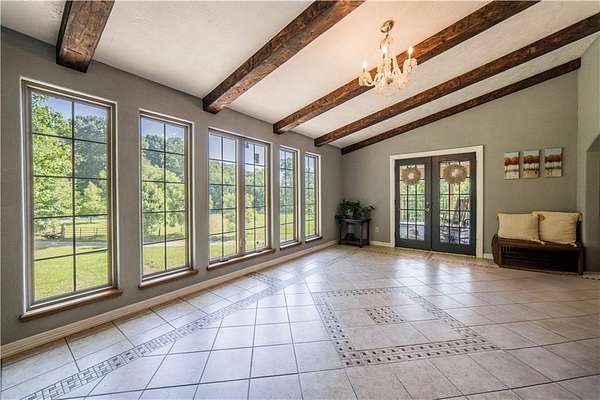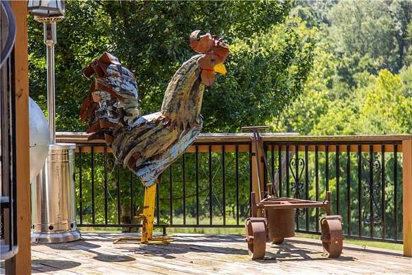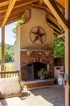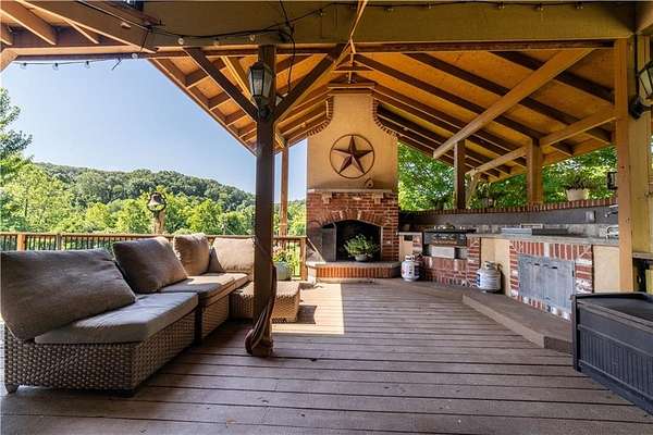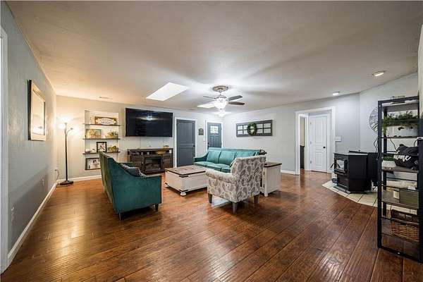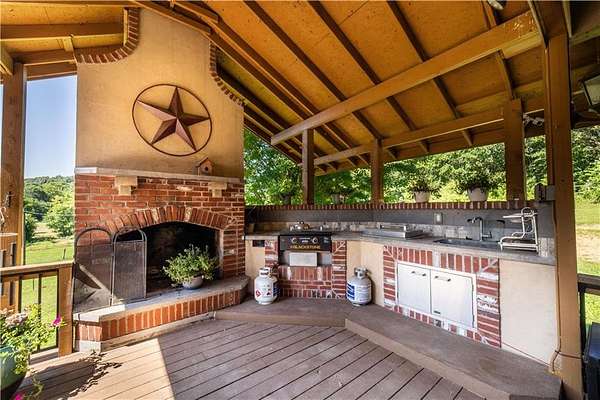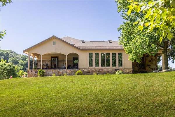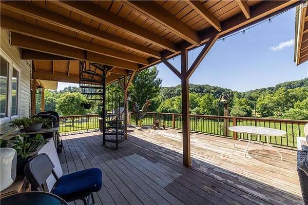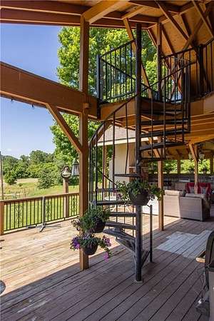 Do you need lots of space in the country and enjoy entertaining? This spacious home on 5 beautiful acres could be yours! Neighbors creek is a few feet of the border. There are over 3,000 sq. ft. of living space. There are two primary suites. One is on the main level and one on the second level. Family room has skylights for added brightness and a pellet stove to warm those cold nights. The kitchen is spacious and comes with a gas range. Adjoining the kitchen is a bright sunroom. But wait, the massive covered patio with outdoor kitchen is ready for outdoor entertaining. Have a business from home with a large office space. Off the patio is a spiral staircase leading to a spare room that would make a great playroom. A tiny home with kitchen, living, bedroom and bath are included for your guests who will be wanting to join you in the peaceful country. Roof is 8 years old, new water heater in 2023, 40k HVAC system in 2022. Dogs will be put up for showings but they are very friendly.
