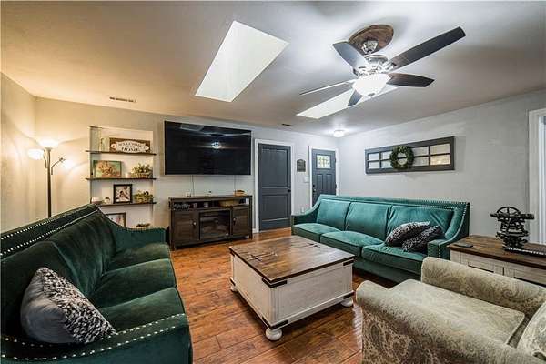 - Attic Storage, Blinds, Built-Ins, Ceiling Fans, Ceramic Tile Counters, Eat-in-Kitchen, Fireplace, Ice Maker Connection, Programmable Thermostat, Skylight, Smoke Detector, Split Floor Plan, Walk-In Closets