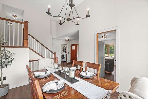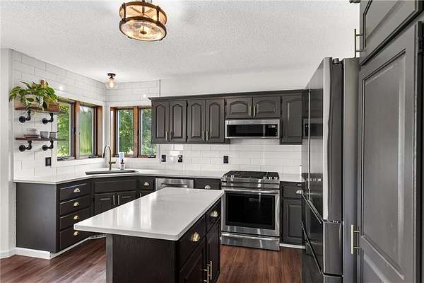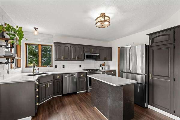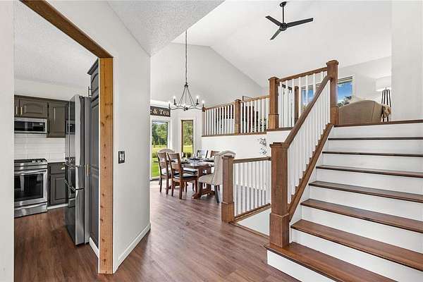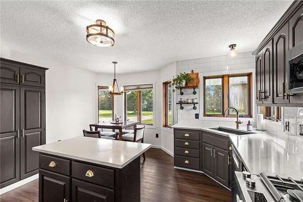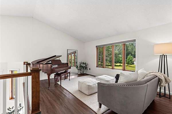 You will find a private serene sanctuary with this 4BR home overlooking your private pond and plenty of wildlife! This Oak Grove home has been tastefully updated throughout and boasts a pristine lawn, spacious eat-in Kitchen with Quartz counters, tiled backsplash, and high-end SS appl. The vaulted ceilings, 3 Bedrooms on upper level, and newer flooring gives a wonderful flow to a large primary bedroom and full ensuite bathroom. Walkout lower level with cozy gas fireplace, 4th bedroom, and plenty of storage. Oversized heated 3 stall attached garage and detached 5 stall garage provides plenty of storage for all the toys. Walk out your back door to hunt turkey and deer. Just blocks to Lake George Regional Park, this home gives you the ideal balance with country living and yet easy access to freeways, shopping, dining and more! Welcome Home.