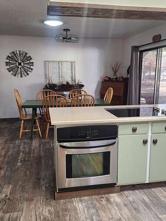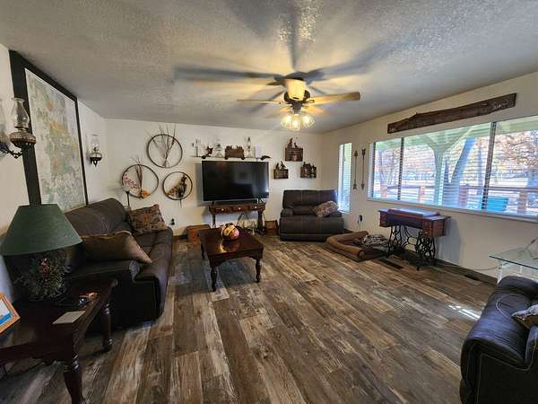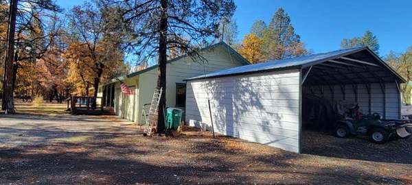 This 3/2 is set off the road on it's own 5+acre wooded retreat. New floors and new plumbing. Spacious light and bright kitchen with lots of cabinets. Living room with free standing pellet stove. 2 car attached garage plus a 24 x 24 carport and covered outdoor patio. Water lines have been replaced and non freeze faucets around outside house. Front and backyard sprinklers. Plenty of room for horses or animals plus lots of opportunities for viewing deer and other wildlife, and close to fishing- Hat Creek and Rising River.