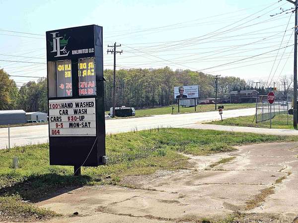IDEAL LOCATION for small business or retail! HIGHLY VISIBLE corner lot, less than a mile from I-85 in Spartanburg County on Highway 221 (4-lane). Formerly used as a Car Lot! The primary building is a commercial grade portable office building w/two offices and a bathroom! Structure has new LUXURY VINYL flooring and fresh paint throughout and is handicapped accessible! Primary office building features a new MINI-SPLIT HVAC unit, as well as a new INSTANT HOT WATER system in the bathroom! Property also includes one Detached Metal Garage (18x20), one small storage building and one Detached Metal Carport! Level Corner Lot is almost completely paved with asphalt and has approximately 295' combined road frontage.