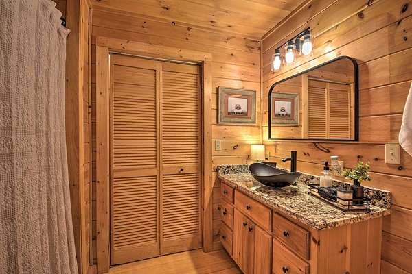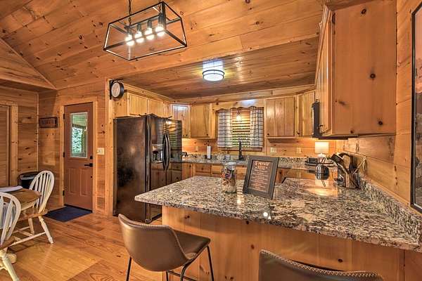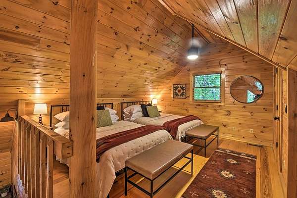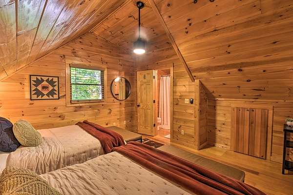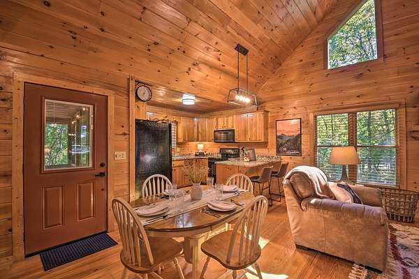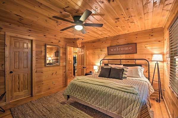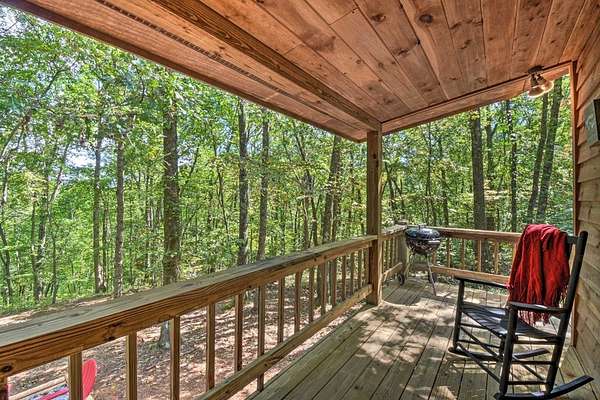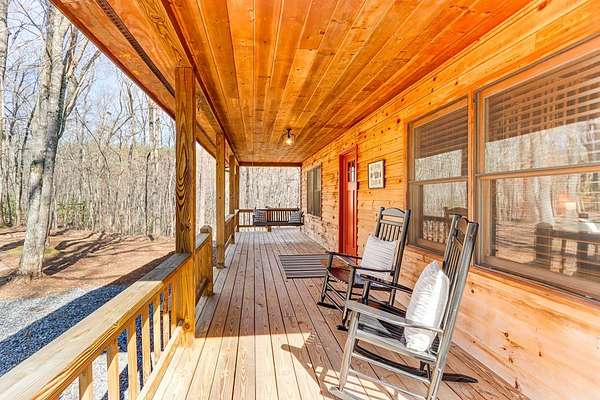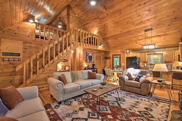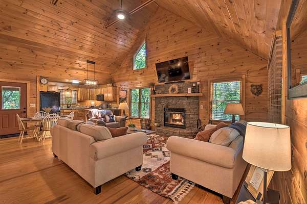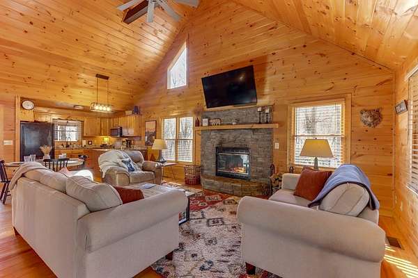 Escape to Your Private Ridge-Top Sanctuary Tucked away at the end of a quiet cul-de-sac, this charming rustic cabin offers the perfect blend of secluded "forest bathing" and modern accessibility. With all-paved roads leading right to your door, arriving at your mountain getaway is a breeze. Inside, the home glows with warm wood interiors and soaring cathedral ceilings. Imagine chilly evenings anchored by the floor-to-ceiling stone fireplace, or hosting summer dinners on the large, screened back porch. Whether you're soaking in the hot tub or enjoying the seasonal mountain views (which a little selective trimming could turn into a year-round vista!), this is indoor-outdoor living at its finest. The Layout: Main Level: An open-concept Great Room designed for flow, featuring a full kitchen, dining area, master suite, and convenient laundry. Upper Level: A private bedroom and full bath—perfect for guests. The Grounds: A heavily wooded lot that feels like a private park. Some of the terrain is surprisingly gentle, providing a rare level space for kids and pets to play safely. Location, Location: You're minutes from the heartbeat of the mountains—Blue Ridge, McCaysville, the Toccoa River, and the lake are all just a short drive away. Bonus: The sellers are willing to leave it fully furnished, making this a truly turn-key opportunity.