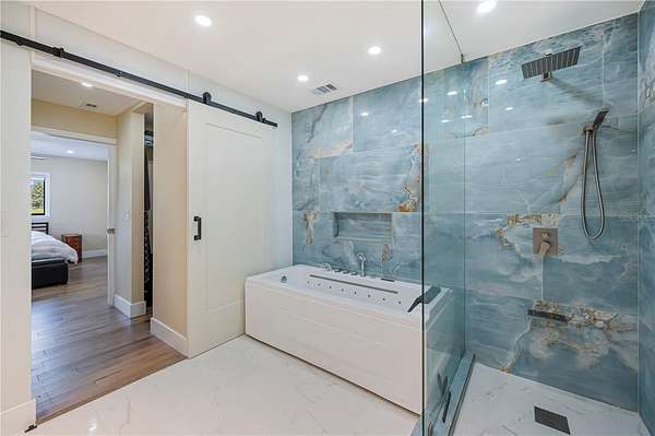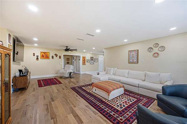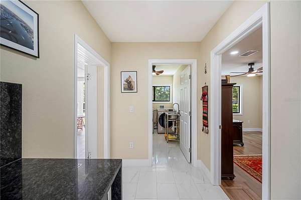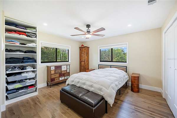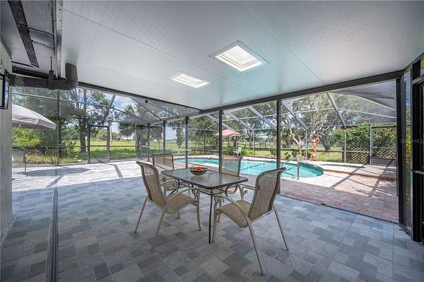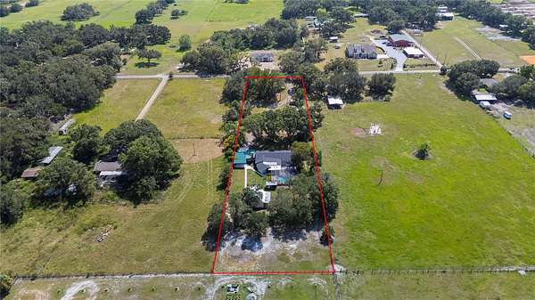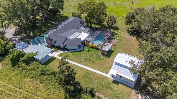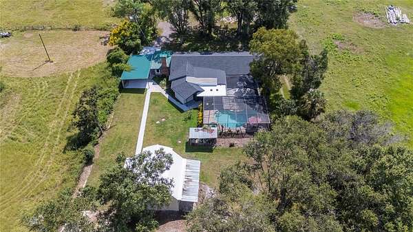 This outstanding home located on 2 private acres, has to be seen to be believed!! NO HOA! NO CDD!, NO Water bill, NO Sewer bill! Everything has been updated with exquisite attention to detail by the current owner. A slice of Old Florida charm with every modern convenience! Open floor plan, that accentuates the outside view through the bay window in the spacious living room that boasts real Harwood flooring throughout. Once inside you will be captivated by the old Florida touches in the dining room. Look up and you will see the wooded, cedar ceiling, then the wood burning free standing fireplace just to name a few. The kitchen is a cooks dream! Plenty of cabinets for storage, gleaming granite countertops with a waterfall edge, stainless steel appliances and a wine/beverage fridge! The large walk in pantry & storage filled breakfast bar can hold anything all the entertaining items you may have. Just off the kitchen is the coziest breakfast room with wood details and casement windows - Old Florida feel, right there! Primary bedroom is very spacious, enjoy 2 walk in closets and a private bath that has been remodeled and personifies European luxury. Heated, smart commode with built in bidet, whirlpool tub and separate steam shower, all enveloped in the most elegant porcelain tile walls. You will feel like you are in the Mediterranean! Each bathroom has been remodeled to the finest detail, granite vanities, tiled showers, even the pool bath is stunning. This home has a porte-cochere, French for carport, generously sized for bringing in groceries during the summer rains. Owner entrance on this side of the home is covered, and leads into the lovely, spacious mudroom, complete with a/c and an original second stone fireplace, large window and additional, separate entrance completes the space. Through the double doors, you will find the inside laundry room on the left, Fourth bedroom is currently utilized as an office, but perfect for a guest room or family room. Kitchen is directly to the right for grocery convenience. Outfitted with the latest stainless steel appliances including a wine/beverage refrigerator. Outside space is unbelievable! Stone pavers line the floor of the completely screened pool/patio area, loads of space for dining al fresco, pool parties, whatever strikes your fancy. Completing this very special property is the 2 story Barndominium. Currently outfitted as a gym with 2 a/c units and all equipment stays! Second floor has flooring & electric, perfect for a clubhouse/teen hangout! 2 additional storage sheds on property for all the toys. Fully fenced and the cute cows are your current neighbors! 2 full acres, NO HOA, private septic & well system, recent roof replacement & newer windows. Close to Lithia Springs and Alderman's Ford Conservation area, easy access to Brandon. Make this your forever home, it's a beauty!!