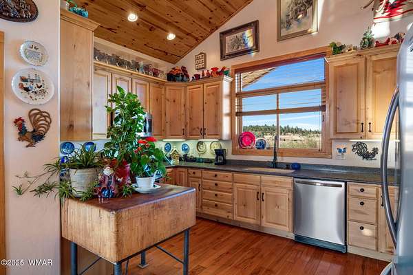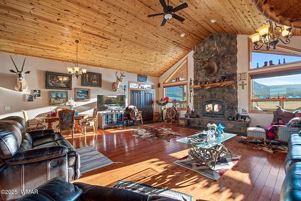 ''Recently repositioned at a compelling new price, offering outstanding value in today's market.'' PRIVATE SANCTUARY IN PARADISE Situated in the heart of Alpine, Arizona, in the beautiful White Mountains, this exceptional 29 +/- acre horse property offers the ultimate in privacy, space, and all-season mountain living. A private, gated entrance welcomes you to a custom-built, cedar-sided, 3-bedroom, 2-bath home designed for comfort and durability. It features 10-foot walls, vaulted ceilings, a striking floor-to-ceiling John Wayne-style faux rock fireplace, maple hardwood floors, slate in the bathrooms and laundry room, Berber carpet in the bedrooms, and covered redwood decks perfect for taking in the views. The land is a true gem for equestrian and outdoor enthusiasts. Mostly 8 ft. elk fencing, a private fish pond is visited by nesting Canadian geese and surrounded by Rocky Mountain willows, pines, and cottonwoods adds to the serenity. The property also includes underground power and a 500-gallon owned propane tank which provides you the flexibility to select the supplier with the most competitive price to refill your tank. With no deed restrictions and paved access via County Road 2311, this property provides both freedom and convenience. Located just one mile from National Forest access and 40 minutes from Sunrise Ski Resort, it's ideal for year-round recreation. Alpine is renowned for world-class hunting, fishing, scenic lakes and streams, and endless hiking and biking trails. A 3-bay truck garage with a metal roof, paved parking, a basketball hoop, and multiple heating options including a Lennox furnace and a beautiful wood-burning fireplace complete this rare mountain retreat. Truly, Alpine living at its finest. Seller is a licensed AZ. Real Estate Broker currently inactive.