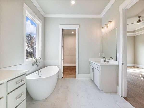 - Bookcases, Crown Molding, Double Vanity, Entrance Foyer 2 Story, High Ceilings 10 ft Main, High Ceilings 9 ft Upper, Tray Ceiling(s), Walk-In Closet(s)
