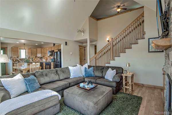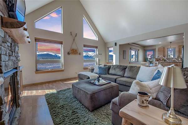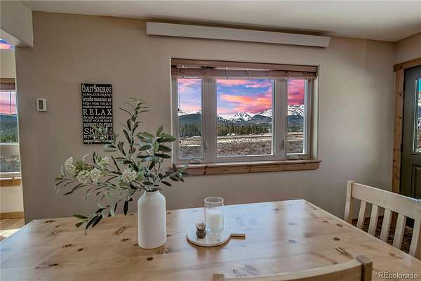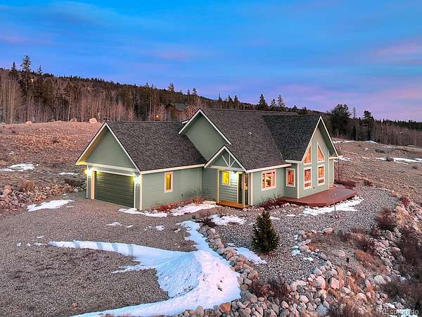 Sweeping mountain views of Colorado’s iconic 14,000-foot peaks pair with the ease of rarely available main-level living in this Alma home. Set on over three acres approximately 17 miles from Breckenridge, the home enjoys expansive mountain scenery and a low-maintenance approach to mountain living. Vaulted ceilings and expansive windows draw the mountains in, filling the main living spaces with natural light and views. The great room and kitchen connect seamlessly, anchored by a stone chimney and gas fireplace. Natural gas service supports both the gas range and fireplace. The primary suite is positioned on the main level and includes a custom-tiled walk-in shower, spacious vanity and room for a cozy reading chair. A second bedroom is on the main level with a full bath nearby. The loft functions as a sleeping alcove with closet, windows and private bath, home office or other flexible space. Every bedroom includes a walk-in closet. From the two-car garage, enter into a spacious mudroom fit for laundry with custom built-ins, pantry and separate utility room. Quality windows open to the outdoors, while exterior doors to the Trex decking and yard encourage indoor-outdoor rhythm. The large yard includes level areas well suited for pets and outdoor entertaining. Native grasses, wildflowers and moose sightings create a setting that feels at home in the mountain country. Breckenridge is within easy reach for skiing, while the surrounding area offers hiking, snowshoeing, cross-country skiing, off-road and national forest adventures, and Continental Divide headwaters for fishing on the South Platte River. Custom built in 2011 for the owners and carefully maintained, the home balances thoughtful design with practical ease. Low-maintenance exterior siding, blacktop road access, a simple approach to the front porch and garage, Glacier Ridge HOA road snow removal, and mostly furnished all contribute to a retreat that feels comfortably turnkey.