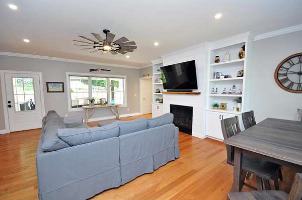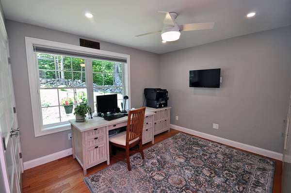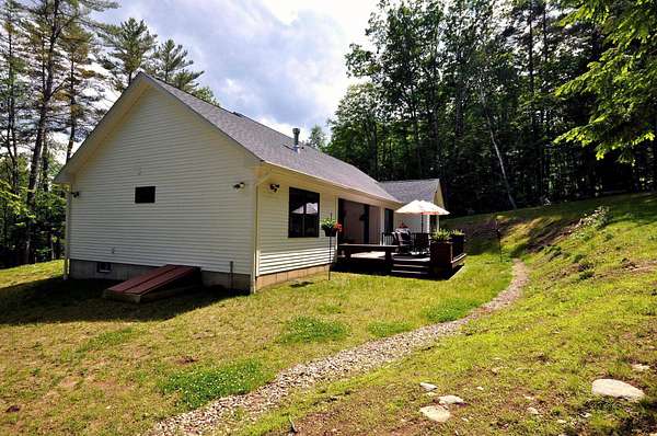 Stunning Ranch home with many fine details! Enter the home from your covered porch and you immediately feel the warmth of the open concept home with great views to the private rear yard. The large living room offers a second dining area, a gas log fireplace, hardwood floors thru-out are just some of the upgrades in this home. The wonderful kitchen is well appointed including gas stove, kitchen island and large pantry this is open to the dining area overlooking the back yard and wildlife, There is also a mudroom/ entry and laundry room on this level making this very convenient entry from the attached garage . The Primary suite is secluded and private from the rest of the home includes a large oversized bath with soaking tub, walk in shower, 2 walk in closets . The other 2 bedrooms and full bath are located on the opposite side of the home. As you exit the living room you are blown away by the large deck partially covered and exposed to the private back yard no neighbors in sight except the occasional Moose, Bear, Deer, Wild Turkeys . The property has a third detached single car garage with full power and auto open door perfect for yard tools or a project car to work on. This home offers the best of everything all on one floor. The basement is wide open for your ideas if you need more room and great for storage . Close to all points North and South this makes a great commuter home in the heart of the lakes Region Time to make the move to better living!