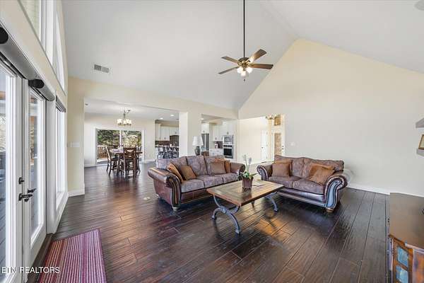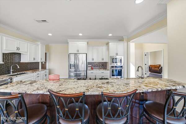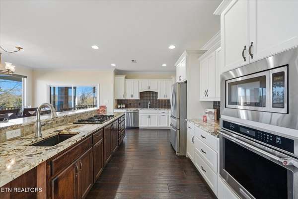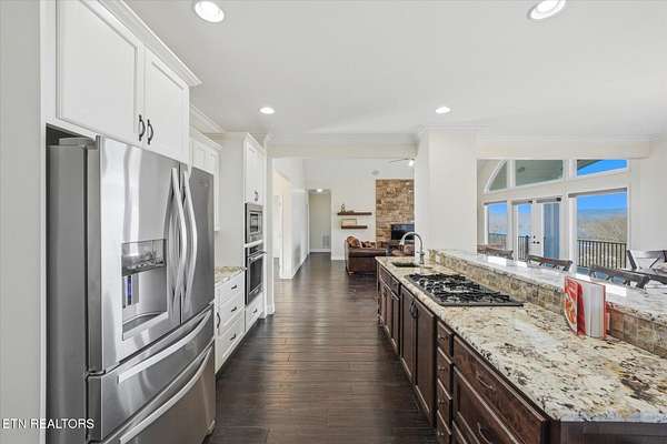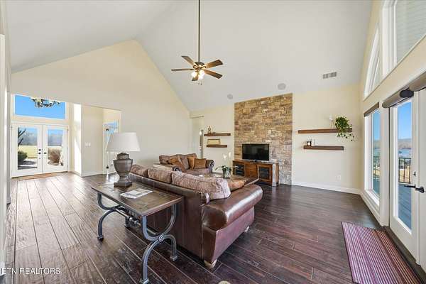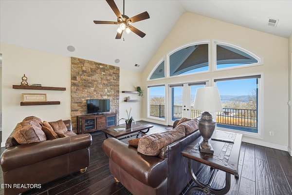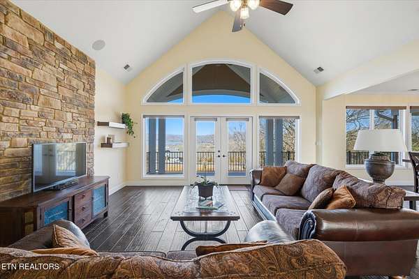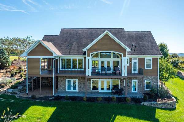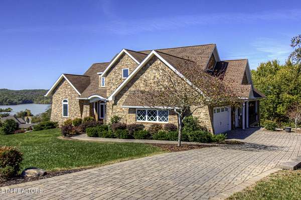 $100,000 REDUCTION MOTIVATED Freshly Painted Rooms. Breathtaking views of the Lake an Mountains from this custom luxury home in the prestigious gated community of Grande Vista Bay located on Watts Bar Lake. Sitting on 3 lots to give you that unobstructed view off your back deck making up the 1.68 acres and only one HOA fee. You have views of the lake and the mountain from most every window. The care in the detailed work will show you how much thought was put into this home by the sellers. The vaulted great room starts off your lake life living and open to the gourmet kitchen and dining area. Entertaining will be a breeze with all the areas to enjoy from the oversized breakfast bar with a gas cook top to the bright and beautiful eating area which flows right out from either area to your covered porch and patio with corner stone fireplace which can easily be screened. Kitchen features wall convection oven, oven and microwave. Pull out pot drawers and a nice spice cabinet and even a coffee station. Enjoy lake views from your primary bedroom with spa like ensuite with granite counters, custom cabinetry, plumbed for a garden tub, walk in tiled shower with multiple shower heads, two walk-in closets and linen closets. You will enjoy secondary access to the patio through your ensuite as well! Also, on the main level we have another bedroom or make it your office, hallway full bath. Spacious laundry with granite counters, cabinets with sink and hanging area and outside access makes life a little nicer. The 2-car garage completes this level. Lower-Level features floor to ceiling stone fireplace in the family room where you can enjoy game night, movie night and a wet bar to enjoy your favorite beverage. Two bedrooms, one with private bath the other bedroom has access to backyard and hall full bath. Multi-use room and your equipment room with lots of storage. Outside the covered patio area has rock flooring and plumbed for hot tub. Out in the landscaped yard is a stone path and a fire pit area all looking at your mountain and lake viewsThere is a $160 GVBPOA Account Set Up Fee to Buyer at closing.