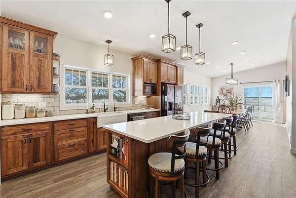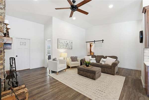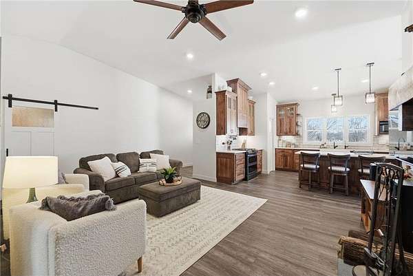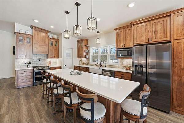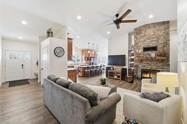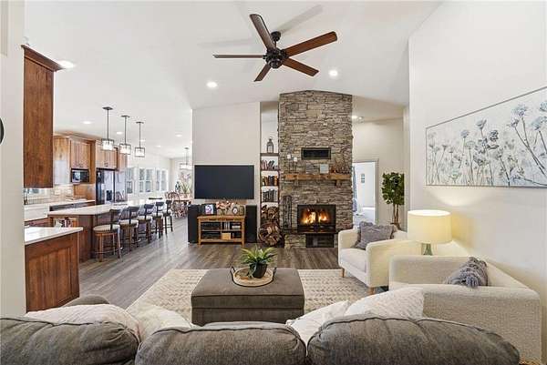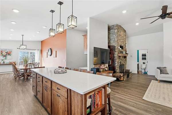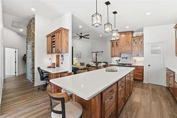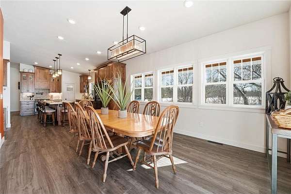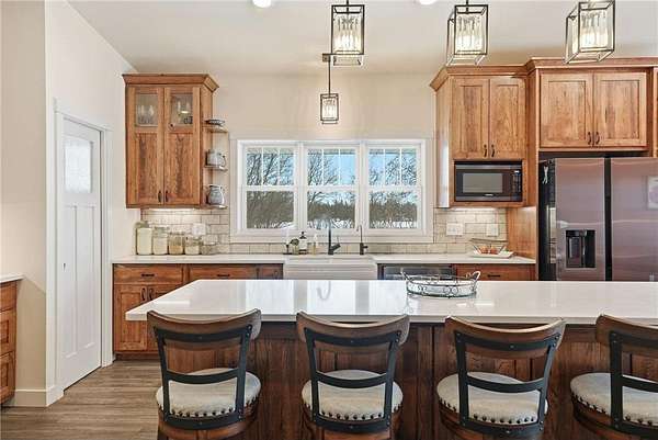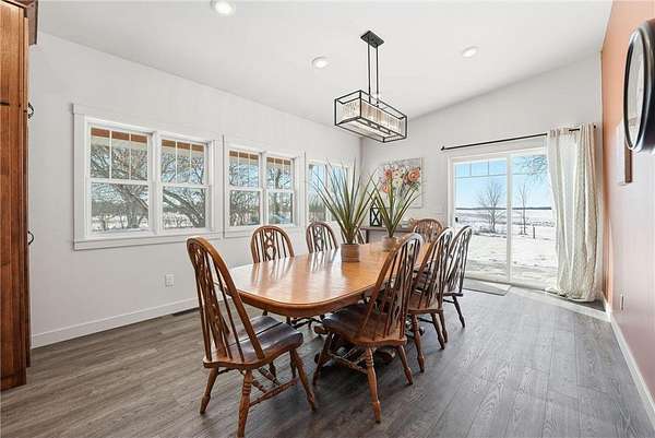 Set on 6 acres at the edge of Parkers Prairie, this 2020-built home delivers space, privacy & wide-open western sunset views. Just minutes from downtown, you get country freedom without giving up convenience. Designed for true one-level living, the interior blends modern lines with warmth—hickory cabinetry, walk-in pantry & an oversized quartz island anchor the kitchen, while a wood-burning fireplace adds character. An office nook makes working from home seamless. Outside, a cement patio wraps to a large covered side porch built for relaxing or entertaining. Natural gas service adds efficiency. The heated & air-conditioned shop—featuring forced air & in-floor heat—offers bonus living/sleeping space for guests plus serious storage. Chicken coop & greenhouse complete this hard-to-find lifestyle setup. Privacy on the edge of town, it's the total package!