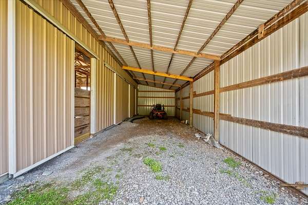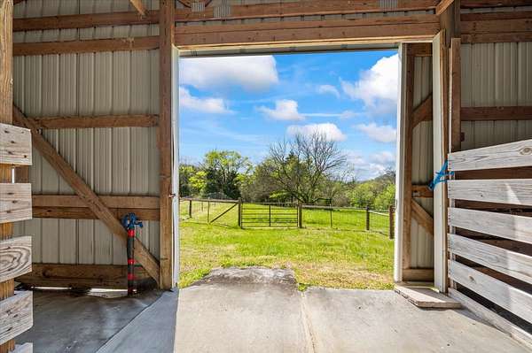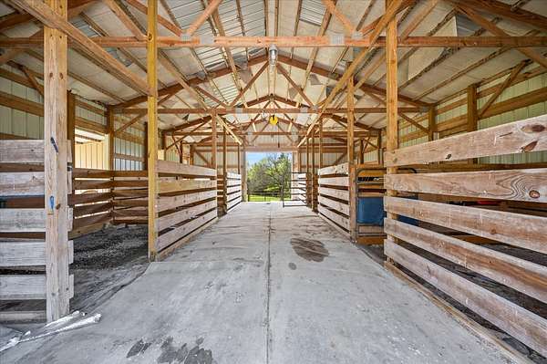 The 40x60 barn is already equipped with water and electricity and features five horse stalls, a tack room, feed room, and covered storage area—perfect for horses, equipment, or hobby farming.