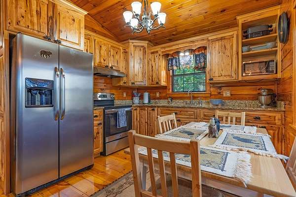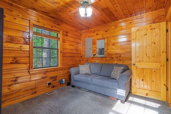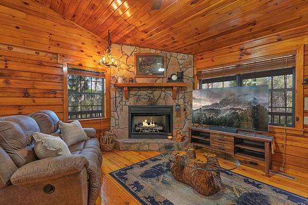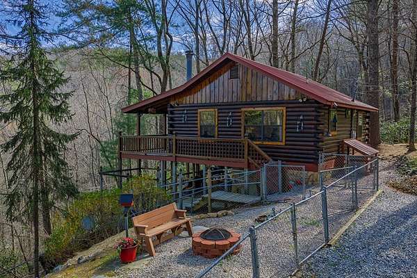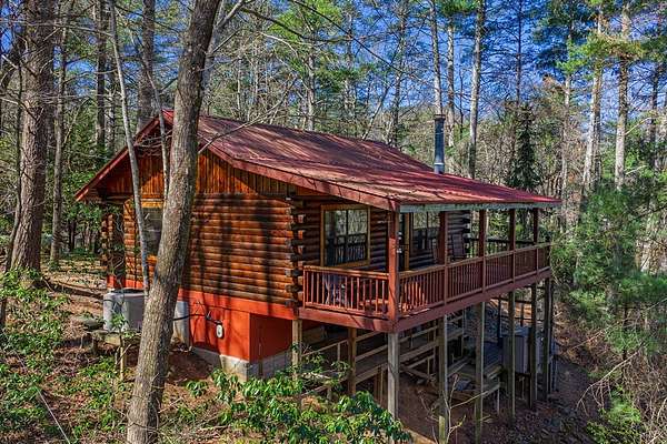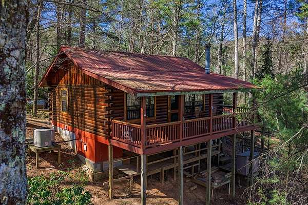 Escape to the peace and beauty of the North Georgia mountains with this charming, fully furnished 2-bedroom, 1-bath log home located in the desirable Little Rock Creek area of Cherry Log. Built in 1996 and nestled on 2.41 acres, this well-maintained single-level retreat offers the perfect blend of rustic charm and modern updates. A natural spring runs the length of the property, and you can hear the sounds of Rock Creek as you enjoy from the spacious wraparound deck or while relaxing around the outdoor fire pit. Inside, you'll find real wood floors, granite countertops, and a warm, inviting living space designed for comfort and simplicity. This home has been thoughtfully updated for peace of mind, including a new metal roof, new HVAC system, and all new appliances (2021). The septic system has been recently pumped, and the crawlspace is fully encapsulated, A Generac generator adds an extra layer of reliability. Additional features include a covered porch, laundry closet, shared well, and a fully fenced yard, perfect for pet lovers. Enjoy seasonal mountain views in a quiet, peaceful neighborhood just minutes from hiking, fishing, and all that Blue Ridge has to offer. Whether you're looking for a full-time residence, weekend getaway, or investment opportunity, this mountain retreat is move-in ready and waiting for you.