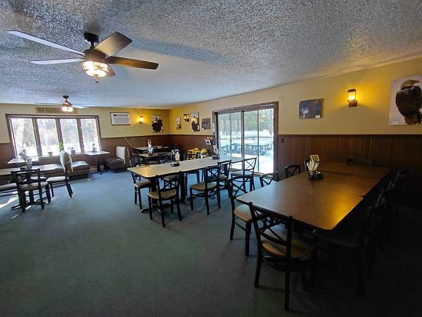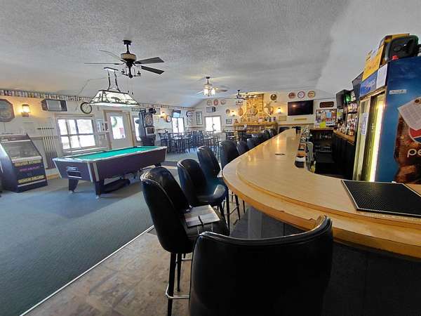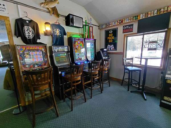 If you're seeking a turn-key investment opportunity, the Campfire Bar and Grill near Pickerel Lake might be your ideal choice. Nestled on 5.2 wooded acres, this establishment offers a rustic, inviting atmosphere with a large bar area featuring a working stone fireplace, pool table, gaming machines, jukebox, dartboard, and high-top tables. The venue is fully equipped with inventory to ensure a seamless transition for new ownership. The spacious dining room and outdoor deck provide ample seating options for patrons. For those who enjoy the outdoors, the property includes an outdoor bar and picnic area, perfect for taking in the natural surroundings. The fully functional kitchen is equipped with coolers, a walk-in freezer, flat top, grill area, and Broaster fryer, ensuring efficient service. Additional storage is available in the basement, which houses a beer cooler. The property also includes a separate 720 sq ft living quarters with two bedrooms, a full bathroom, a 2.5 car garage, and a private deck. Extra rooms and a full bath in the basement offer additional living space. Positioned on an ATV/Snowmobile trail and near several lakes, this location is ideal for attracting outdoor enthusiasts. The current owner is willing to train the new buyer, and all necessary licensing is already in place, making this a hassle-free investment.