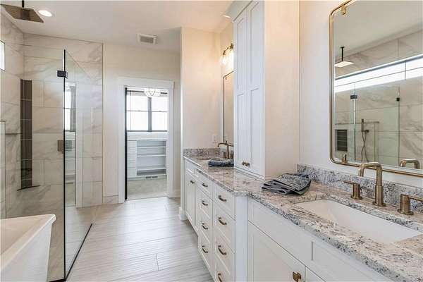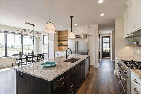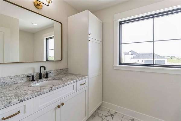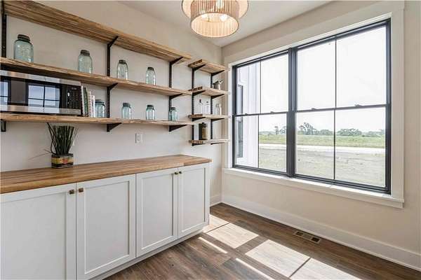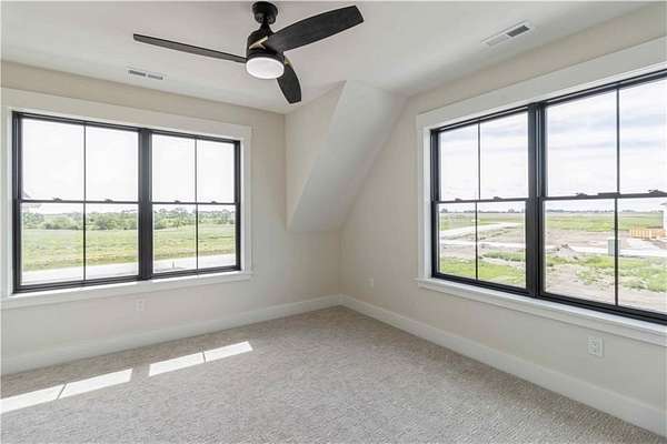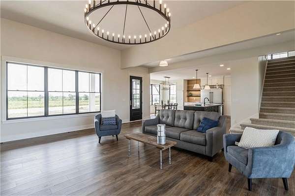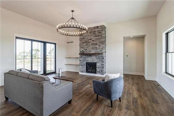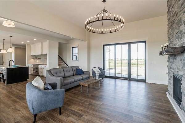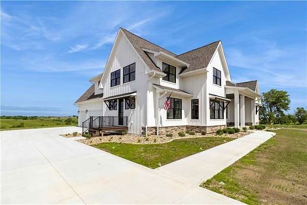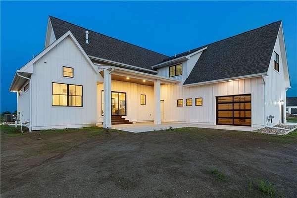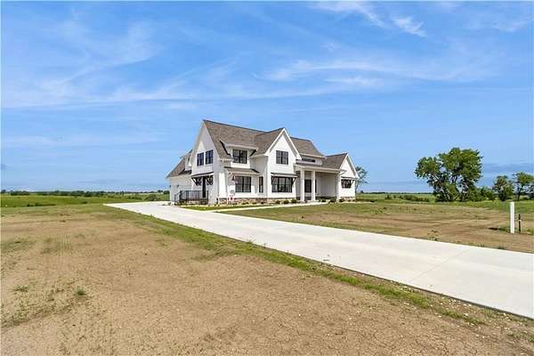 Amazing New Construction acreage! Picturesque views await in this fantastic home at Scenic Ridge. Three 60 Homes presents a stunning 1.5 story plan, 4500 sq ft finished, 5 BR, 5 BA, on over 3 acres! Entering the home you'll love the 12' ceilings in the main room providing a spacious feel. The kitchen is designed with a large center island with stone, commercial grade appliances, and pantry area. Main floor primary suite with amazing window views to the west, heated bathroom floors, and a large walk-in closet. Three bedrooms upstairs and two baths along with bonus room. Basement has another BR, wet bar with perfect entertainment space, and a "hidden" room. High end lighting and real wood trim and cabinets throughout. Side-load garage gives front elevation a stately farmhouse look showing off covered front porch. Electric and gas is set to accommodate future pool in back. Peaceful, rural feel on paved roads near suburbs. Home is now complete so now is the time to get your incentives!