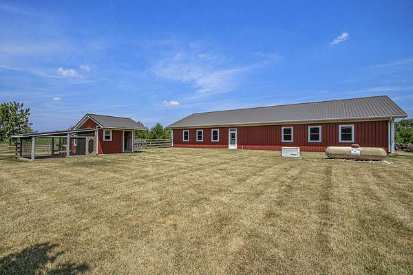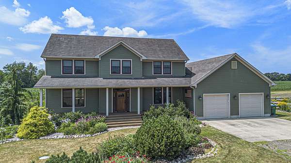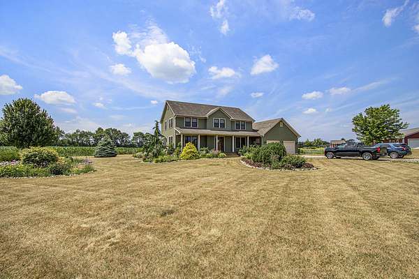 Looking for a little room to breathe? This one-of-a-kind property in Niles offers 14 acres of peace and privacy surrounded by wide-open fields-and it's loaded with extras for those craving space, self-sufficiency, or simply a serene place to call home. The main home welcomes you with a covered front porch and beautiful landscaping. Inside, hardwood floors flow through much of the main level, including the large welcoming foyer. Enjoy a dedicated office space and an expansive living room with plenty of room for entertaining. The kitchen is built to handle it all, with a center island, range, built-in oven, dishwasher, and generous dine-in area. A slider leads to the covered back deck-perfect for unwinding with a view. Just off the kitchen is a massive mudroom/laundry combo and a handy half bath. Upstairs, you'll find a charming hardwood-floored loft (ideal for a reading nook or workspace), two well-sized bedrooms with a shared full bath, and a sprawling primary suite complete with walk-in closet and a tiled bath featuring a walk-in shower with dual shower heads. The unfinished basement is already insulated-ready for your future gym, rec space, or workshop dreams. A two-car attached garage offers convenience, and the huge pole barn with heated and cooled workshop opens the door to endless hobbies or entrepreneurial pursuits. There's also a fenced garden, a chicken coop, and plenty of space to cultivate your homesteading vision. This is a rare opportunity to enjoy country living with city conveniences just a short drive away-only 10 minutes to downtown Niles, 20 minutes to Notre Dame or downtown South Bend, and about 30 minutes to St. Joe or the beaches of Lake Michigan. Whether you're dreaming of a mini farm, a retreat from the hustle, or just room to stretch out, 2160 Portage Rd delivers.