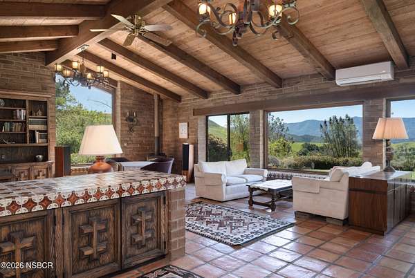 This remarkable 174-acre ranch in Happy Canyon of Santa Ynez, California, presents a rare opportunity for those seeking a tranquil and private retreat amidst breathtaking natural surroundings. Nestled at the end of a winding road, the property boasts rolling farmland, majestic mountain views, and a lush landscape adorned with native pine and oak trees, making it an ideal haven for ranchers, nature enthusiasts, or anyone longing for serenity.The ranch includes three distinct residences: a charming adobe brick main house with two bedrooms, spacious living and family areas, and patios offering stunning vistas of the Santa Ynez Mountains; a quaint guest house providing a cozy escape in a shaded canyon; and a manager's house for added convenience. These residences are thoughtfully designed to blend comfort with the natural beauty of the area.Sustainability is a key feature of this property. A private well supplies water to two 30,000-gallon cisterns and a 5,000-gallon tank dedicated to cattle. The land benefits from the Williamson Act Agricultural Preserve, which offers property tax advantages. Fenced for grazing, the ranch includes two large pastures equipped with water troughs and shelters. Additional facilities include a barn/shop, a cattle working pen with squeeze, and fertile soil that holds potential for vineyard development within the prestigious Happy Canyon AVA.For those who enjoy exploring, a network of trails and roads winds through the property, leading to awe-inspiring panoramic views. Whether you're drawn to the idea of cultivating the land, raising livestock, or simply soaking in the peaceful ambiance, this extraordinary ranch offers endless possibilities to connect with nature and create your dream lifestyle in the heart of Happy Canyon.