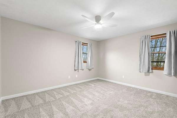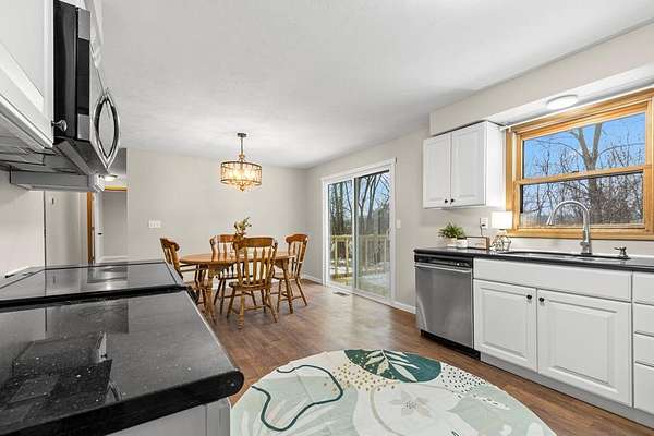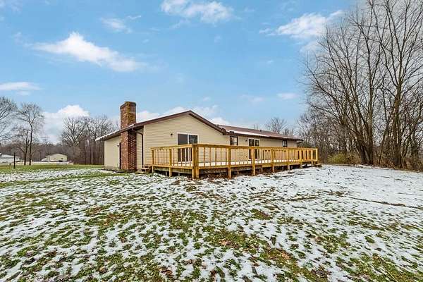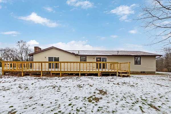 Updated 3-bedroom, 2-bath brick ranch offers the perfect blend of comfort and private, scenic living. Nestled on 5.32 acres of rolling lawn and mature woods in Hillsdale schools. Step inside to discover a refreshed interior featuring all-new flooring, new carpet in the bedrooms, and fresh paint throughout. The primary bedroom features its own ensuite bath, offering comfort and privacy. The home has been thoughtfully improved with new light fixtures, updated bathrooms, and kitchen. The family room features a fireplace and brand-new sliding glass doors, which lead to a large, brand-new deck. Major mechanical updates have been taken care of for peace of mind, including a new furnace and, central air conditioning. Metal roof is just over 2 years old. Whether you're dreaming of gardening, hunting, or simply enjoying quiet country views, this property offers endless possibilities. Seller is licensed real estate agent in Ohio.
