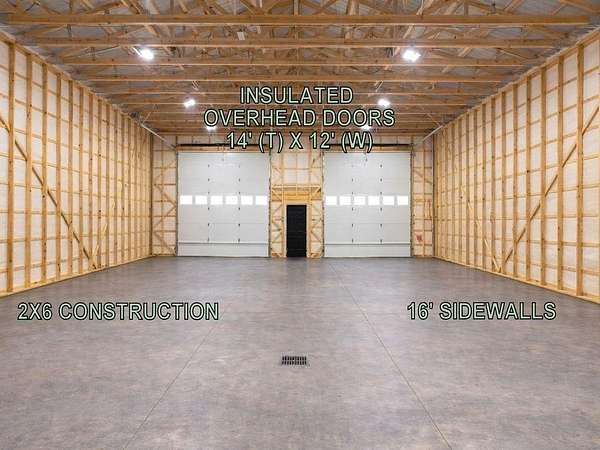 Est $1,523/moDream shop located between Long and Belle Taine lakes. It was built in 2023 and is sized at 40x60. Features 2x6 framing, 16ft sidewalls, 14ft (T) x 12ft (W) insulated doors, bright LED lighting, in-floor tubing, floor drain, 200 amp electrical service and a 4x40 concrete apron. This is an attractive build with clean space. It has the square footage and height to store nearly anything. Sits on 1.08 wooded acres in a highly sought after location.