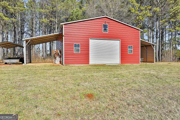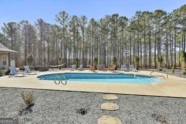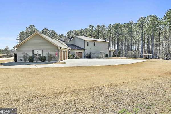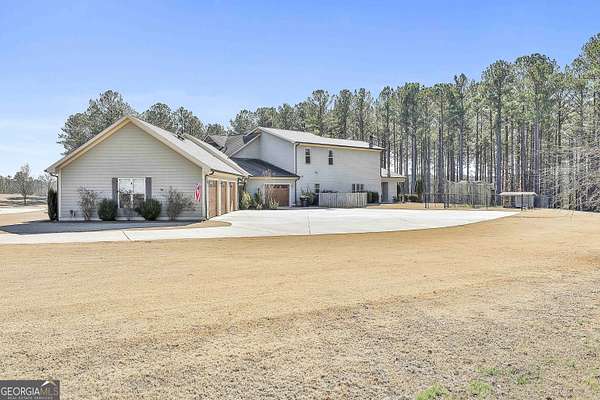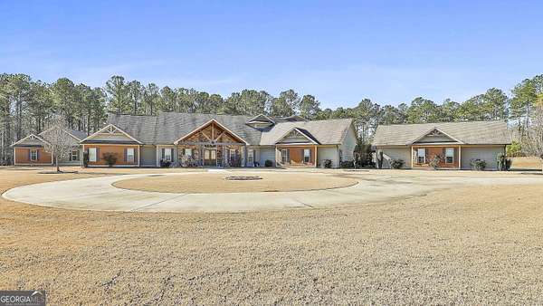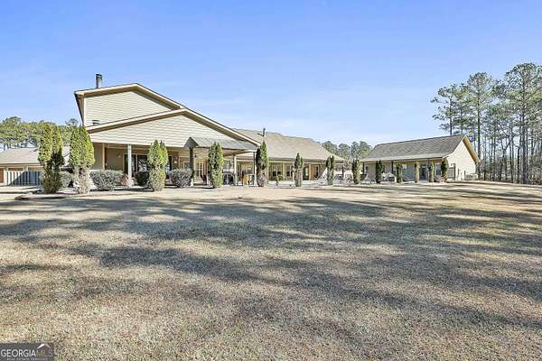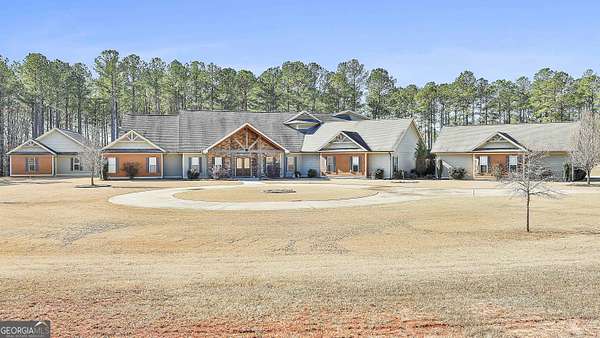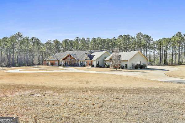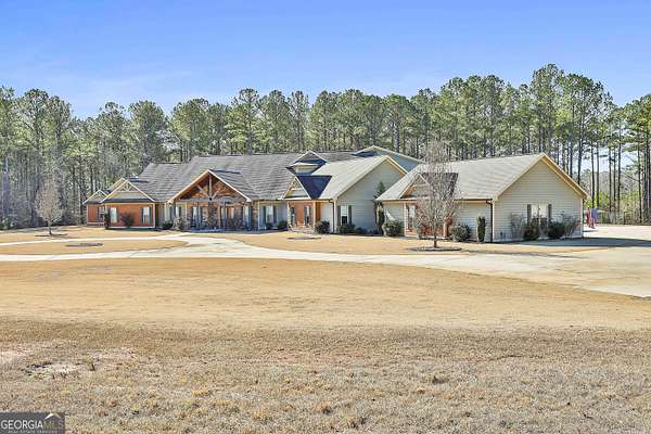 Welcome to this breathtaking 5 bedroom, 4.5 bath estate offering an impressive 7,670+/- sq ft of refined living space, perfectly situated on 33.157+/- pristine acres in highly desirable Coweta County. This remarkable property blends luxury, comfort, and privacy - ideal for entertaining, multi-generational living, or creating your own private retreat. Step inside to an open floor plan with soaring ceilings and expansive living spaces designed to impress. The chef's kitchen is truly the heart of the home, featuring a massive kitchen island, granite countertops, multiple sinks, abundant cabinetry, and an oversized walk-in pantry - perfect for hosting gatherings large or small. The main level includes three spacious bedrooms, each offering its own private full bath and walk-in closet, providing exceptional comfort and privacy. The home features two separate living room areas, both enhanced by gas fireplaces, creating warm and inviting spaces for relaxation and entertaining. Upstairs, you'll find two additional bedrooms and a full bath, along with a versatile loft area. An attic provides ample storage, adding even more functionality to this thoughtfully designed home. The property also boasts a 4-car garage along with a large parking pad, offering ample space for vehicles, guests, and recreational equipment. Outdoor living is just as spectacular. Enjoy the 1,530+/- sq ft pool house, complete with a kitchen and half bath, plus a dedicated theater room and a separate space currently used as a weight room, offering incredible flexibility for entertainment, fitness, or additional gathering space. The in-ground saltwater pool is complemented by an oversized back patio with a gas fireplace, providing stunning views of the rolling acreage and creating the perfect setting for year-round enjoyment. Additional features include an outbuilding and a small shed, ideal for storage, hobbies, or equipment. The expansive acreage offers endless possibilities - whether for recreation, privacy, or future expansion. This truly one-of-a-kind property offers the rare combination of luxury living, exceptional amenities, and unmatched acreage - an extraordinary opportunity in Coweta County. Call T