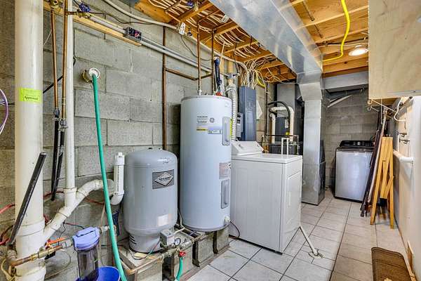 Workshop or detached 2-car garage has heat, A/C, water, and electricity