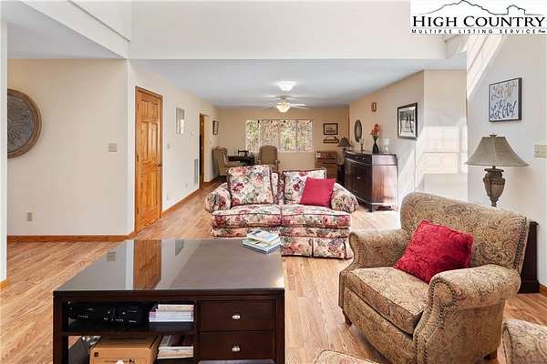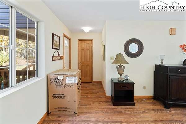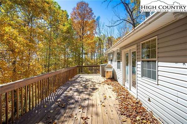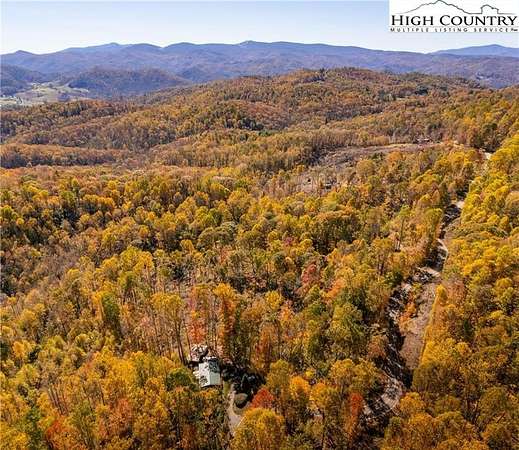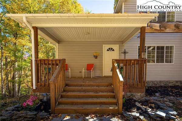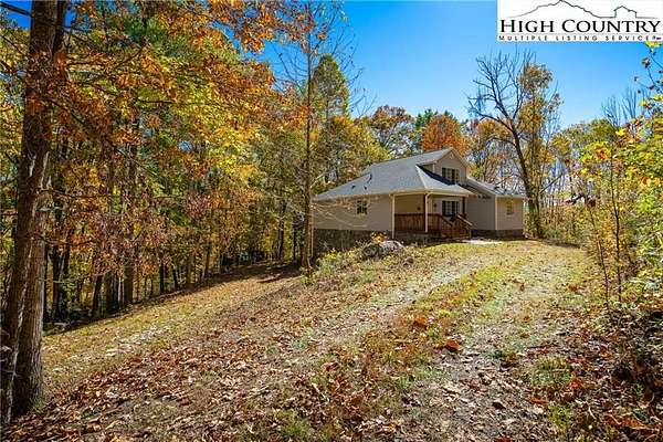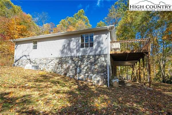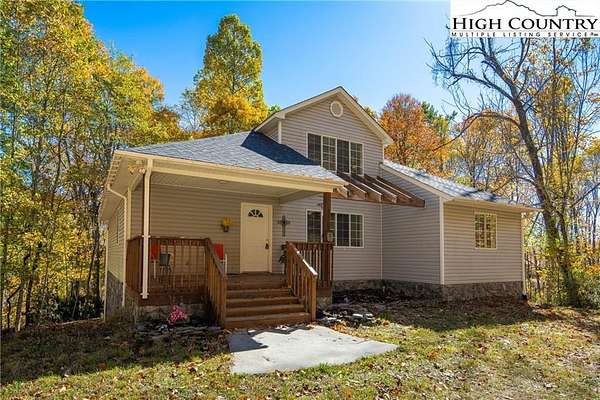 Move in ready home on over 31 unrestricted acres with springs, fruit trees, total privacy, and layered long-range view potential! Originally designed as a bug-out destination, there are multiple hidden rooms and lots of thought given to security and preparedness, including all of the contents that convey with the home such as solar generators, wood stoves, and a plethora of other supplies. All necessities are on the main level as well as a washer/dryer hookup on the main and in the basement so there is no need to traverse the stairs. Main level has large open living area, 2 beds, 2 baths, formal dining room, and kitchen boasting solid surface counters. Full basement walks out on the ground level with a cellar room and additional hidden room for storage. Loft bedroom has ample storage space on either side in the floored attic. Property has already been graded for the addition of a detached garage. New roof and paint in 2024. Covered front porch and open back deck to enjoy the peaceful surroundings and mature hardwoods surrounding the home. No restrictions means that you can open the long range layered views, create gardens, orchards, or pastures, and utilize the property in any way you desire. Located near the top of Stone Mountain, enjoy being off of the beaten path but still an easy paved drive of 30 minutes into all of the amenities of Boone. Don't miss this incredibly unique and enchanting property, come and see today!