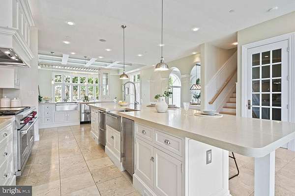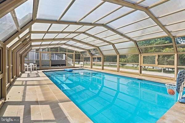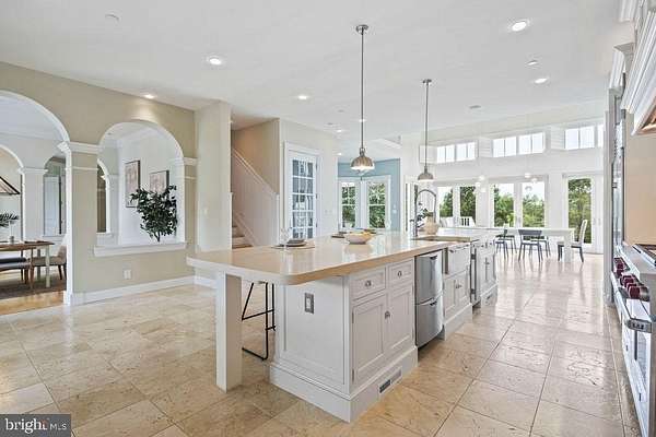 A rare opportunity to experience refined living in one of the most serene settings, this beautifully crafted home blends architectural drama with thoughtful design and exceptional comfort. The moment you enter, soaring cathedral ceilings and striking Italian marble flooring create an immediate sense of luxury, drawing natural light across the home's elegant living spaces. Every room has been designed with both beauty and functionality in mind-from the formal dining room ideal for memorable dinners and celebrations, to the inviting main living areas that transition effortlessly between relaxed everyday living and sophisticated entertaining. The kitchen is truly the heart of the home-expansive, open, and filled with natural light from endless windows. A large central island anchors the space, offering exceptional room for cooking, gathering, and hosting. Its seamless connection to the surrounding living spaces makes it perfect for both intimate evenings and large gatherings. The main-level primary suite provides outstanding convenience and comfort, ideal for those seeking true ground-floor living. With additional private spaces available throughout the home, the layout easily accommodates multi-generational living or extended-stay guests. The expansive basement further enhances the home's versatility, featuring a dedicated home theater room and an additional full kitchen-perfect for movie nights, added living quarters, or extended entertainment space. Additional flexible areas offer endless possibilities for recreation, a studio, or customized use. Outdoor living transforms this residence into a personal retreat. A private in-ground pool anchors the backyard, offering a serene place to unwind, enjoy warm weather, or entertain outdoors. The generous lot enhances privacy and tranquility, creating an atmosphere that feels worlds away yet remains close to everyday conveniences. Blending timeless appeal with exceptional livability, this home delivers elegance, comfort, and remarkable flexibility-a rare chance to enjoy a lifestyle defined by both luxury and ease.