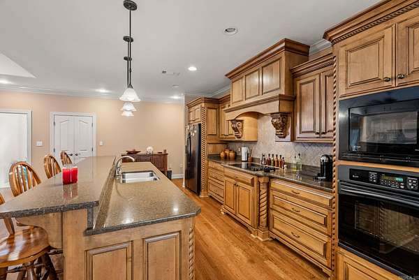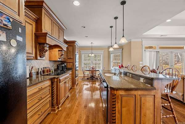 Exceptional custom-built brick home on 2 acres just steps from Pinnacle Mountain State Park! Fantastic floor plan with an open concept kitchen/dining/living combination. The great room is spacious with hardwood floors, tray ceilings, crown molding, and lots of natural light. Granite countertops in kitchen with tile backsplash and maple cabinets with a breakfast bar and breakfast nook! This lives like a one level home with 3 bedrooms on the main level. Handsome primary en-suite with lots of space. Jacuzzi tub and walk in shower! Carpeted walk-in closet with a built-in dresser. Two bedrooms apart share a hall bath. Bonus downstairs living with 2 bedrooms and another full bath. 3-car oversize garage with a workshop and shed. Double-paned windows throughout. French drain system. Woodburning fireplace with ceramic tile, raised hearth and blowers for living room and primary bedroom. New roof 2026! Great opportunity to own acreage near Pinnacle & Rattlesnake Ridge! See agent remarks!