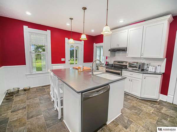 A slice of Nebraska paradise unfolds on 5+ acres, just 11 money saving minutes north of Lincoln and a 'country mile' west of Ceresco just across the county line in Saunders Co. This place has it all! A big and fully restored (restored in 2012-13) folk Victorian farmhouse complete with 4 large bedrooms, two well appointed bathrooms, cooks kitchen, pantries and closets galore! The kitchen alone is huge with a large center island, tons of storage, stainless appliances, and beautiful light from large windows. New windows throughout. Outside, catch the late summer breeze from the renovated porches on the front, and the patio out back. The grounds are a tree lovers dream with a mix of Nebr. native hardwoods and conifers, including Burr and Pin Oak, Buckeye, and Cottonwood. The partially heated two story horse barn and workshop, along with two other garage spaces offer tons of potential. Arrive on pavement. Let your dreams become reality, don't miss this one.