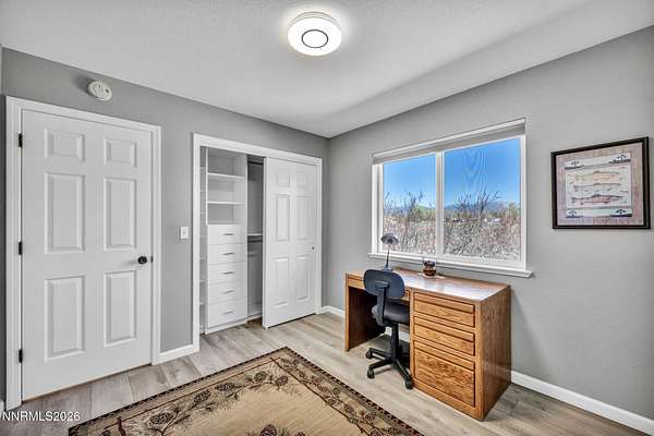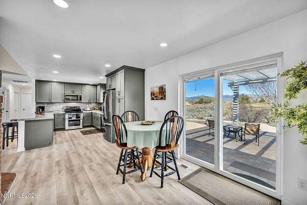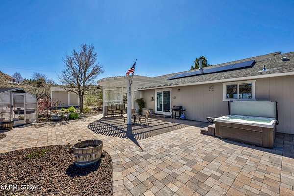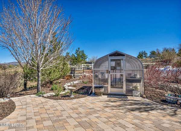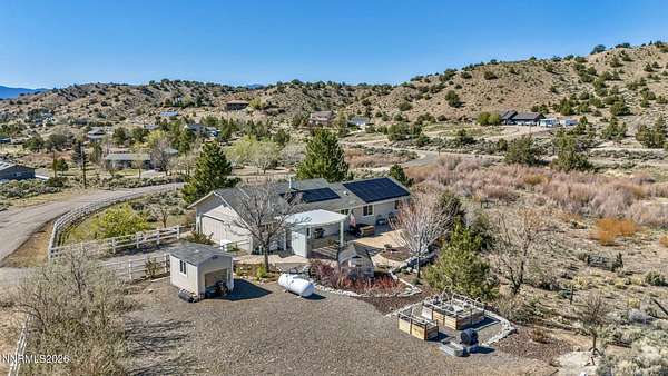Sitting on the outskirts of Gardnerville in Fish Springs, this beautiful property has it all! Breathtaking views of the Sierra Nevada mountains to the West and the Pine Nut Range to the East with Fish Springs Creek running through the Northern edge of the property. Home has been meticulously updated and maintained from head to toe. Recent updates to the home include: Kitchen-soft close cabinets and quartzite countertops, double oven, electric stove, Living Room- pellet stove, Bathrooms- tile, vanities and quartzite countertops, custom closets in bedrooms, Vinyl plank floors throughout, Whole house water softener system and filter, vinyl windows with window treatments throughout, and newer HVAC system. Additional property features include fully insulated garage, 10x12 tuff shed, garden beds, a salt water hot tub, Generac generator, two-level car charger, owned solar panels resulting in an electricity cost of $19 per month year-round. Landscaping features rock retaining walls, pavers (front and back) planting and drip system. A perfect little greenhouse remains with the property and features water and power connections. The entire property is also gated and fenced! This is Nevada living at its finest!