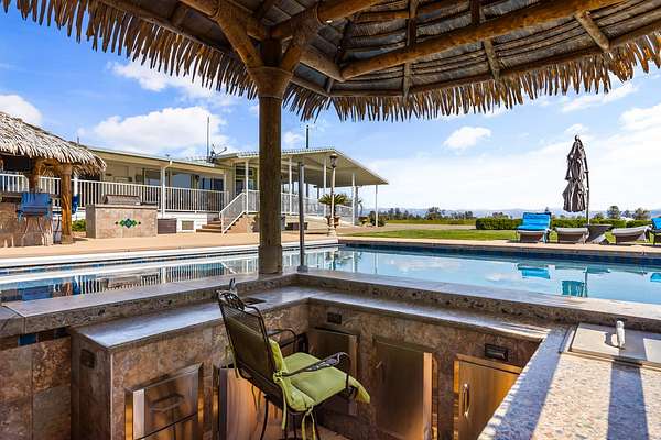 The landscaping and custom-built-in pool at Seven Lakes Ranch are a dream. With a sunken wet bar with in-pool bar stools, fountain, multiple gazebos, outdoor shower, and complete outdoor kitchen with built-in grill, it's ideal space for entertaining family and friends. The property is easily accessible with paved roads throughout. There are multiple garages with RV roll-up doors, barns, shop, and an owned solar system. A ranch with plenty of space for ranch equipment, recreational toys, tools, and vehicles. Come discover the pristine natural beauty of Seven Lakes Ranch!