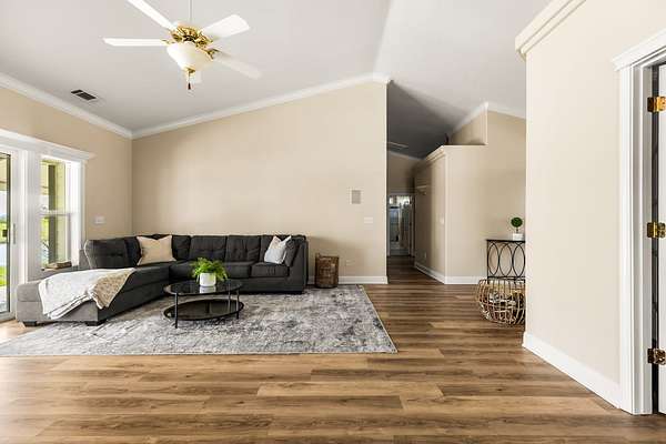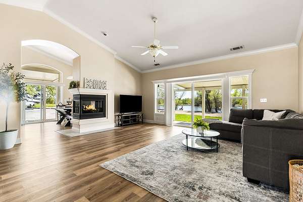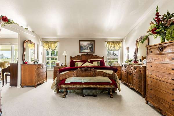 There are three homes on the ranch offering a range of living options for friends/family or potential rental income. Escape to a serene paradise with the main 2,595 SF three-bedroom, two bathroom manufactured home with a wrap-around covered deck overlooking one of the lakes. The entirety of the home from the bedrooms, kitchen, living/dining room, and bathrooms are filled with natural light throughout. There is a large kitchen with an island, gas range, and all the necessary household kitchen appliances. The primary bathroom features a sunken tub, shower, and dual sinks. The additional homes are a custom-built 1,994 SF three-bedroom, two-bathroom home that also enjoys a lake view and a 1,023 SF two-bedroom, one-bathroom home.