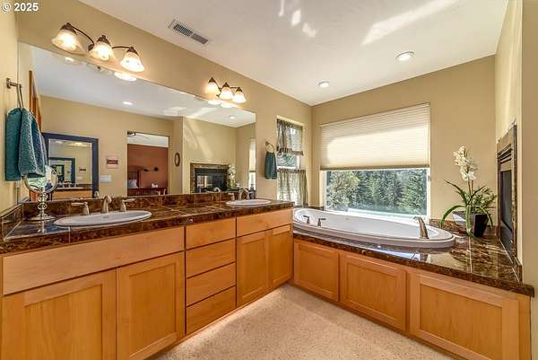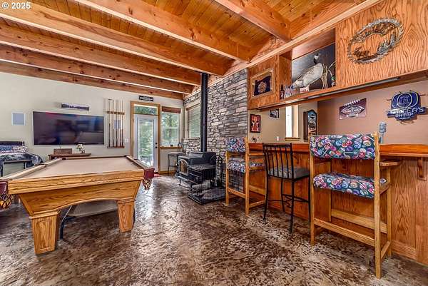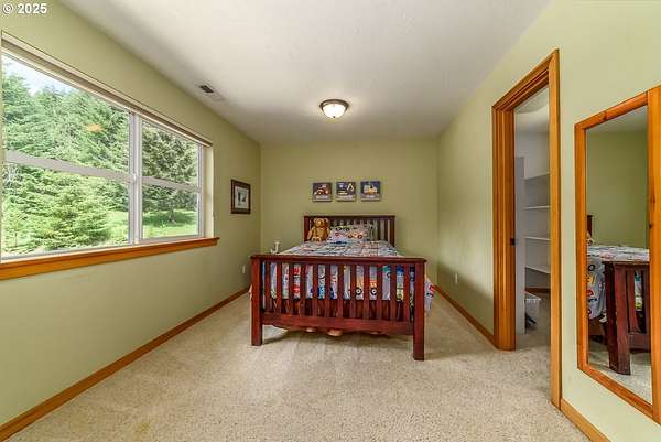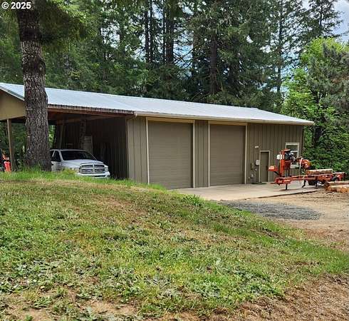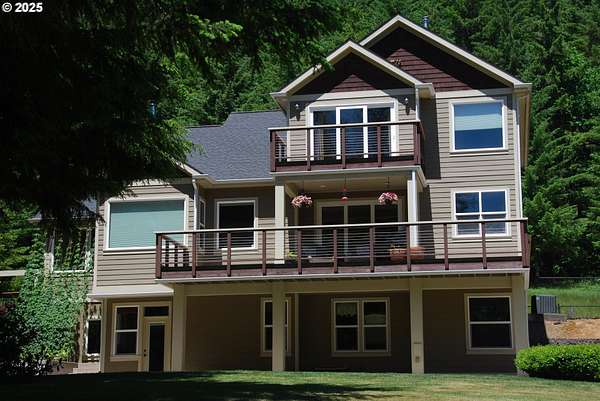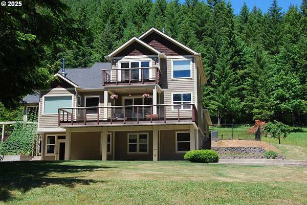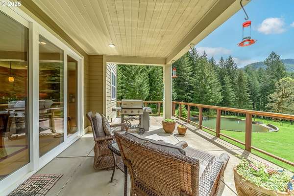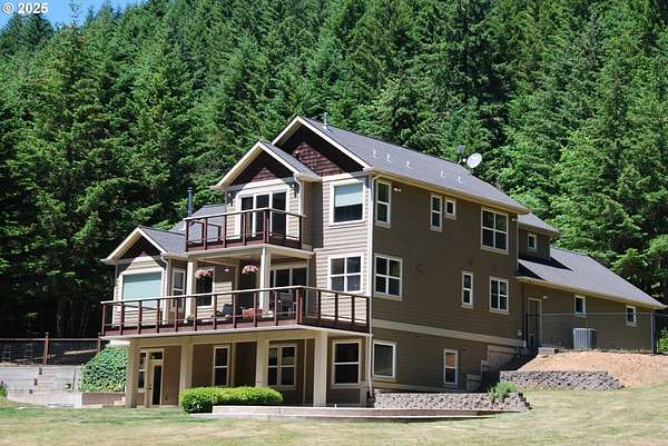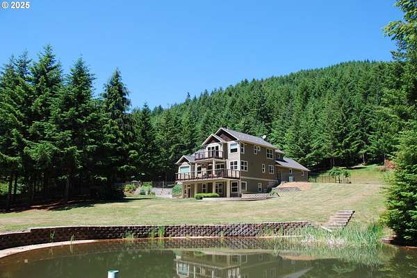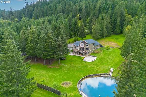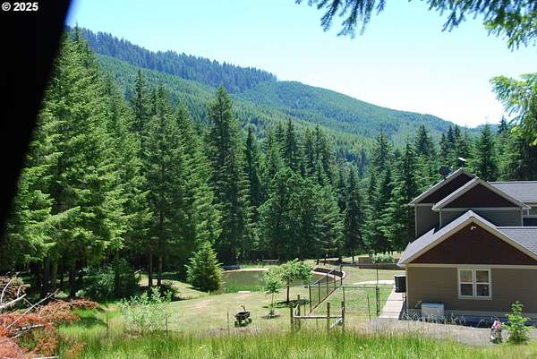 Nestled among the firs is this beautiful 5 bedroom,3.1 bath custom home set on 6.26 private acres. The main level boasts, open great room concept (living room & kitchen recently painted),kitchen w/granite counter tops, maple cabinets and floors, ss appliances include new frig & dishwasher, island w/sink and eating bar, gas cooktop, lots of storage, eating area w/slider out to covered patio where you will enjoy breath taking views. Light and bright living room w/vaulted ceilings and floor to ceiling rock fireplace, a warm and cozy area with a window seat view. Light & bright office set up w/built-ins helps make a great work from home space, additional entry near the 3-car garage has bench seating, laundry room w/sink and great storage. On the upper level you will find the primary suite w/access to a private deck to enjoy to surrounding views, gas fireplace that is dual to primary bath w/jetted tub which includes marble surround, large walk-in closet, double sinks, and walk-in shower. 2 additional bedrooms w/walk-in closets and main bath w/tub shower combo, tile counters and floor. The lower level has a family room w/stamped concrete floors, custom bar w/card room, 2 bedrooms (1 does not have a closet), under stairs storage plus large pantry/cold storage and an exterior door to a covered patio. Outside you will find a fenced park-like setting with a covered patio, 2 separate hot tub hook-ups, raised concrete garden beds, a fire pit area, pond, and beautiful territorial views. 3-car finished, extra-long garage, Generac home generator connected to the electrical panel for quick easy transfer, and a 250-gallon propane tank. Also included is a riding trail, large 32X48 finished shop w/full bath, washer dryer hook-ups, 2 RV size garage doors, RV hook-up and exterior covered parking bay. Come enjoy the quiet and serene views of your own private retreat.