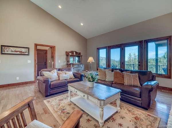 Perfectly perched at the end of a quiet hilltop drive, without ANY 285 noise, in the desirable Homestead neighborhood — ideally located between Denver and nearby ski resorts, this 2016 built 2-acre retreat captures sweeping views and a sense of calm the moment you arrive. Designed for effortless living, the home blends privacy, comfort, and spaces that adapt beautifully to both quiet mornings and lively evenings with friends.