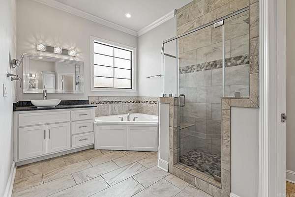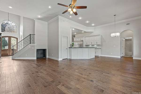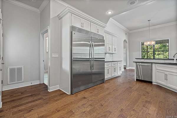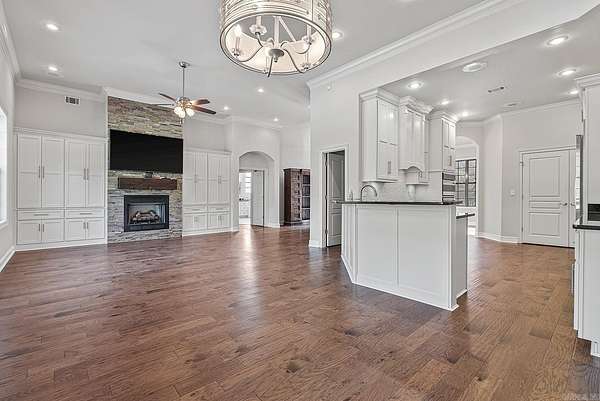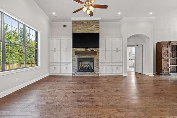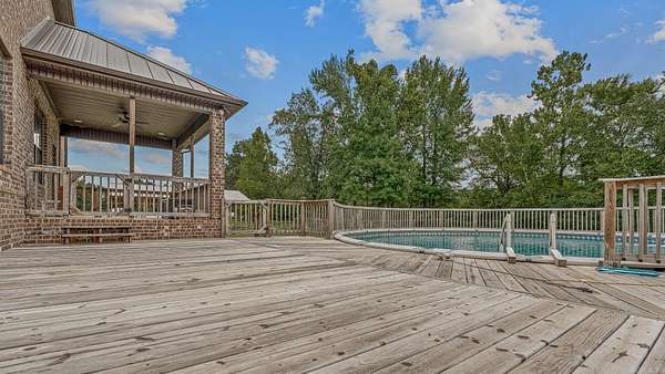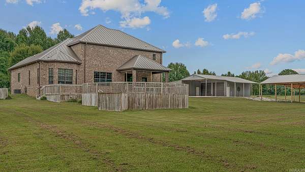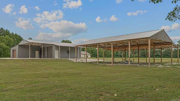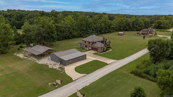 Welcome to this exceptional 5-bedroom, 4-bathroom residence nestled on 2.5 acres in the Brookland school district. From the inviting exterior to the spacious interior, this home was designed with both family and entertaining in mind. Inside, the main level features a large living area with a cozy fireplace that flows seamlessly into the gourmet kitchen, complete with a Kenmore Elite refrigerator, dual convection oven, and generous storage. The primary suite is a true retreat, showcasing a spa-like bathroom with a walk-in shower, jacuzzi tub, and walk-in closet. Also on the main floor are an additional bedroom, full bathroom, dining area, office/playroom, and a built-in dog kennel. Upstairs provides three additional bedrooms, two full bathrooms, and expansive unfinished attic space ideal for storage. A new standing seam metal roof was installed in 2022, giving peace of mind for years to come. Outdoor amenities abound with an above-ground saltwater pool and fenced deck, fenced in outdoor space for animals, a 30x50 pole barn, a 20x60 man cave, and a 24x50 shop (heated and cooled)--perfect for hobbies, storage, or entertaining.