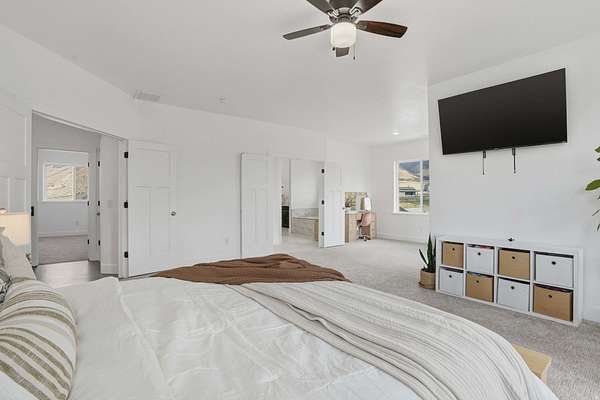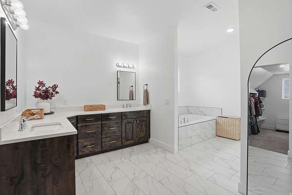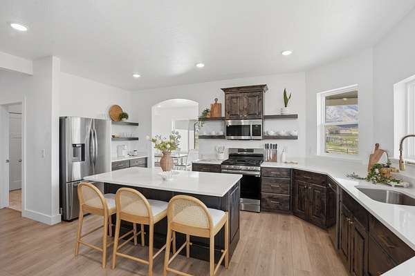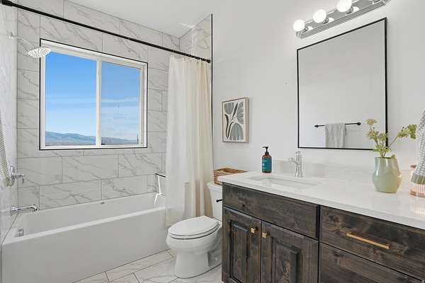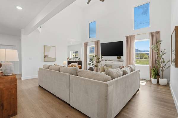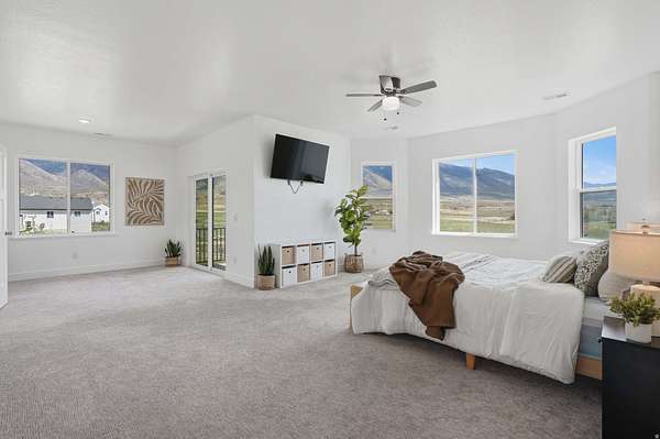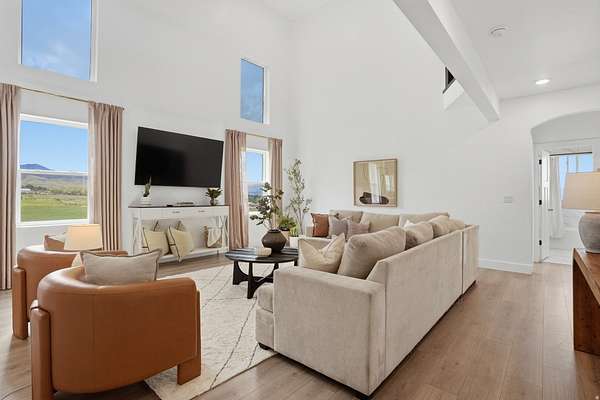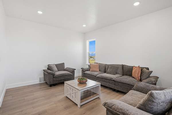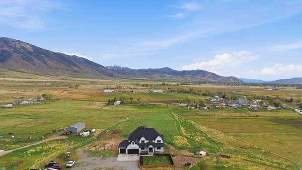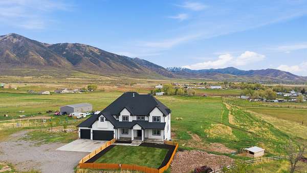 Set on 4.70 acres in the highly sought-after east bench of Tooele, this custom-built home gives you the space, privacy, and freedom that's hard to find while still being just a short drive to the Salt Lake Valley. From the moment you arrive, the fully fenced front yard and welcoming entryway creates an inviting feel. Inside, you're greeted by a functional entry with a built-in bench and hooks, opening to flexible spaces on both sides perfect for a dining room, office, or cozy reading area. The layout just makes sense and flows naturally throughout the home. The kitchen is truly the heart of it all, featuring a large island, tons of cabinetry, and an additional dining space, all open to the main living room with vaulted ceilings that make the space feel bright and expansive. A main-level bedroom and full bathroom add even more flexibility for guests or working from home. Upstairs, you'll find four bedrooms, including a Jack-and-Jill setup and a spacious primary suite with a fully tiled bathroom, separate tub and shower, dual vanities, a large walk-in closet, and private patio access. The unfinished basement offers 2,165 square feet to grow into. Whether you're thinking a theater, gym, or additional living space, you get that opportunity here to customize. Plus massive cold storage. Step outside and you'll really see what sets this property apart. With 4.70 acres of usable land, you have room for animals, future outbuildings, or just space to enjoy. The backyard is set up for making memories, with an in-ground trampoline, firepit, and a large deck for gathering and relaxing. With over 5,800 square feet and water shares through Lincoln Culinary included, this is more than just a home.. It's a place you can grow into and truly make your own. Buyer and Buyer's Agent to verify all information. Buyer is advised to obtain an independent measurement.
