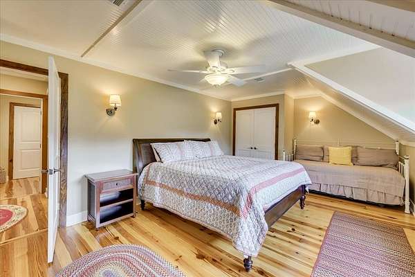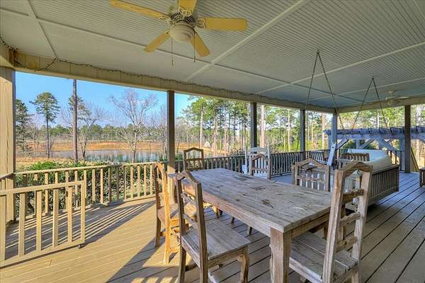 ''Woodlands Retreat'' A Sportsman's Paradise. For the discerning sportsman this ideally situated tract of immaculately managed farm land offers a diverse native habitat for game. Managed for deer, turkey, and quail with a total of 295 acres. Large swaths of quail woods open into lush fields of native grasses and food plots for wildlife. The two large ponds offer a total of 11 acres of exemplary fishing for Tiger Bass and Copper Nose Bluegills. The east side of the property is bounded by a scenic rocky creek. Bring your family and friends to this custom home of Hardie Plank Exterior in a Board and Batten style with a 50 year metal roof. Comfortable home that offers 4,754 sq. ft. with two story great room and open kitchen floor plan. Wood floors in main section are from old pine that was part of the original Pre Civil War post office in Selma, Alabama. When that building was dismantled, the wood was stored in a warehouse. Friends brought the warehouse and gave the wood to the current owners. Kitchen is a chefs dream. Large center island countertop is Red Dragon granite. Many cabinets, wet bar and ice maker round out the stainless appliances. Home comes fully furnished and with 4 bedrooms, 2 bunk beds and 3 baths can sleep up to 19 people. Large porch at side which overlooks pond and hillside field. Oversized drive through garage with roll up doors has storage galore. Inside the Garage is a Gun Room and Gun Safe. Garage has electric and water and also a hookup for a welder. Outside is large pole barn for all your tractors and 4 wheelers. It includes a fish cleaning station with granite countertop. Outdoor amenities include bluestone patios and walkways. One Patio is under a pergola and. has a table and chairs and cooking area with Big Green Egg. The second patio has fire pit and seating area. Outdoor lighted bocce court. A Montana Outfitter's Tent under a metal-roofed pavilion overlooks one of the ponds. Property is under a conservation easement with 3 building envelopes, each 2 acres with a view of a pond. Property can be subdivided. 6 Miles from home is the Bobby Brown State Park offering access to Clark Hill Lake. This is an extraordinary opportunity to fish for bass in the shoals of the Broad River with 5 types of native bass. Both Lake Russell and Clark's Hill Lake are within 6 miles. Clark's Hill Lake has easy access. Lake Russell does not allow docks or houses to be built close to the lake and access is limited. Elbert County-Patz field is a 15 minute drive and. has a runway length of 5,004 feet. Invite your friends, family and corporate guests to join you at this spectacular property. Elberton is 15 miles away, Washington Georgia is 25 miles, Lincolnton is 22 miles, Athens is 50 miles, Atlanta is 85 Miles. Greenville SC is 90 miles and Greenwood is 40 miles.