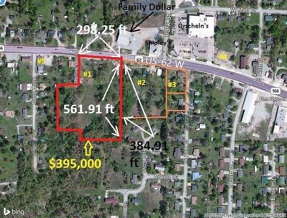 Est $2,880/moPRIME COMMERCIAL PROPERTY!! 5.9 acres, located near the intersection of Park & Hwy. 62W. Perfect for commercial store, car wash, etc. All city utilities.