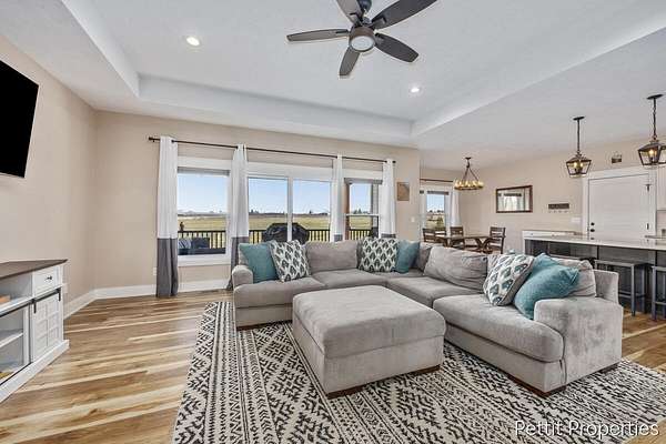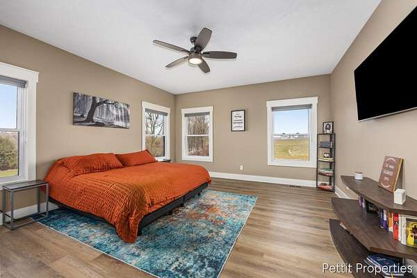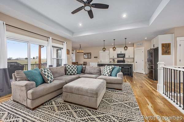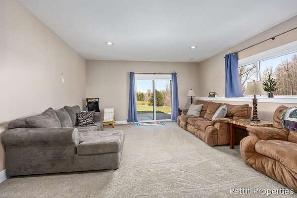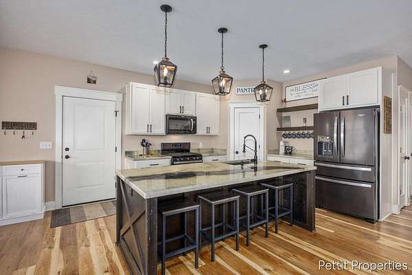 Set on over 4 private acres on a quiet paved private road, this beautifully designed home offers the space, privacy, and layout today's buyers are searching for. From the moment you walk in, natural light and an open floor plan create a warm, inviting feel that instantly feels like home. The custom kitchen is the centerpiece, featuring an oversized island perfect for gathering and an impressive walk in pantry that truly needs to be seen in person. The living room is lined with windows and opens to a covered deck, creating the perfect space to relax and take in the peaceful surroundings. The primary suite is privately positioned on its own side of the home, offering a spacious retreat with a beautifully finished bath, double sinks, a custom shower, and an oversized walk in closet. The main floor also includes an additional bedroom and full bath, along with the option for main floor laundry if desired. The fully finished walkout lower level adds even more flexibility with two additional bedrooms, a full bathroom, and a second living space ideal for entertaining, hosting guests, or everyday living. Laundry is currently located in the lower level. Homes offering this kind of setting, space, and functionality are hard to find. Schedule your private showing today.