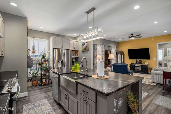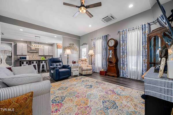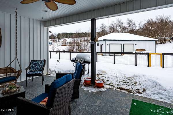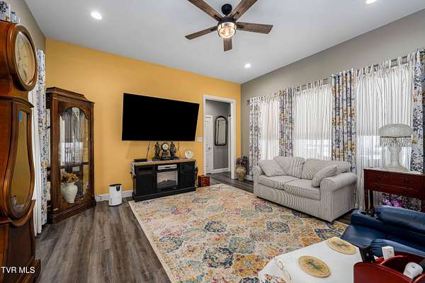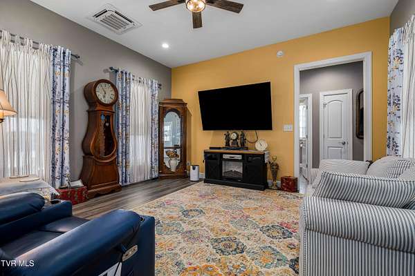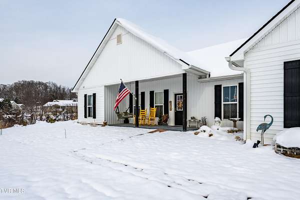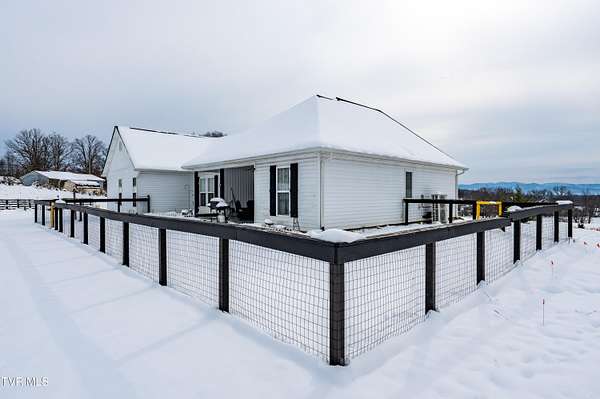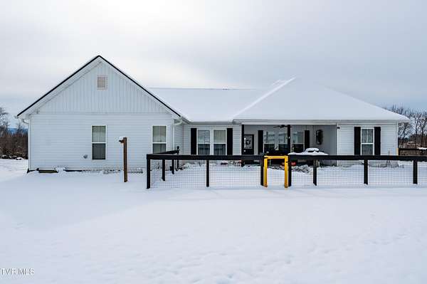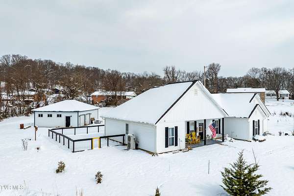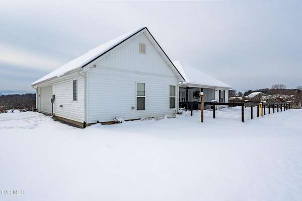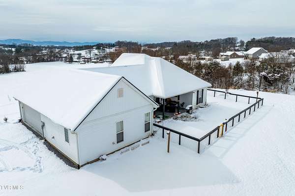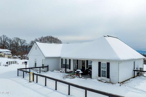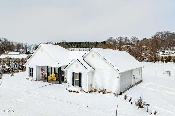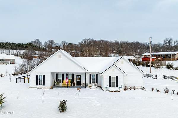 Set on just over 17 acres of beautiful, usable land, this nearly new home offers privacy, functionality, and gorgeous long-range mountain views. Whether you're looking for room to spread out, space for hobbies, or simply peace and quiet, the land here provides a rare mix of open pasture, gentle terrain, and opportunity. The home itself is all on one level and thoughtfully designed for comfortable, everyday living. Inside, the open-concept layout flows around a standout kitchen built with maximum storage in mind. Custom cabinetry was intentionally designed to be both functional and efficient, paired with a huge island featuring additional storage and a bar-height seating area-perfect for casual meals or entertaining. A dedicated coffee station and large pantry add even more convenience. All appliances convey, including the washer and dryer. Each bedroom features its own mini-split system, allowing individual temperature control throughout the home. The primary suite includes a walk-in closet and a unique, heated walk-in shower that truly sets it apart. The laundry room is spacious and well-planned, offering additional built-in storage to keep everything organized. Outside, the home opens to a covered patio complete with a swing and ceiling fan-an ideal spot to relax and take in the mountain views. The fenced backyard includes two gated entrances, providing flexibility for pets, gardening, or future use. A major highlight of the property is the detached two-car garage, which offers substantial storage space and room for a workshop, equipment, or recreational toys. In addition, the property includes two full RV hookups with electric and sewer, making it ideal for guests, travel enthusiasts, or added versatility. Additional features include security cameras, multiple access points to Asheville Highway, and the option to keep the property in Greenbelt status for potential tax benefits. Previously used as a lavender farm, the land is open, usable, and ready for whatever vision the next owner may have. Located just a short drive from Greeneville city limits, this property offers the perfect balance of peaceful country living, stunning views, and everyday convenience-a rare opportunity with space, functionality, and thoughtful details throughout. Buyer/Buyer's Agent to verify all information.