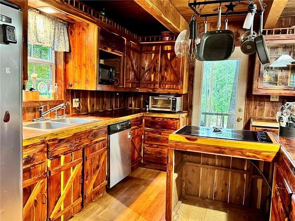 - Ceiling Fans, Drapes, Eat-in-Kitchen, Woodstove