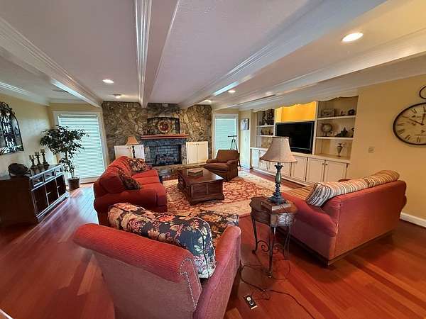 - Bookcases, Eat-In Kitchen, Kitchen Island, Pantry, Specialty Ceilings, Whirlpool Tub, Wired For Sound