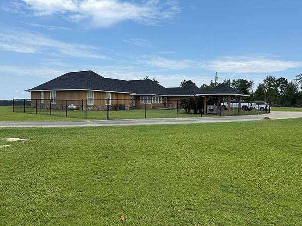This exquisite executive-style residence is situated on 8+ acres outside of Mt. Vernon, offering a central location convenient to Vidalia and Dublin. Upon entering the 3,800-square-foot custom-built home from the circular driveway, adorned with unique brickwork, you will be greeted by a spacious living room featuring a fireplace, built-in cabinetry, and exposed beams, perfect for family gatherings. The kitchen is equipped with a breakfast area, while the formal dining room boasts a pass-thru to the kitchen, built-in shelves, and a large bay window. Adjacent to the kitchen, you will find a den with an office area, a spacious laundry room, and a full bath. The bedroom wing features a stunning master bedroom with two large walk-in closets and an en-suite master bath with granite countertops and a jetted tub. Three additional guest rooms and one additional full bath complete the interior of the home. Additional land available. Contact Maggie at 912-245-8288 to view this amazing home.