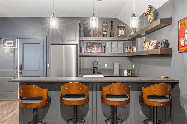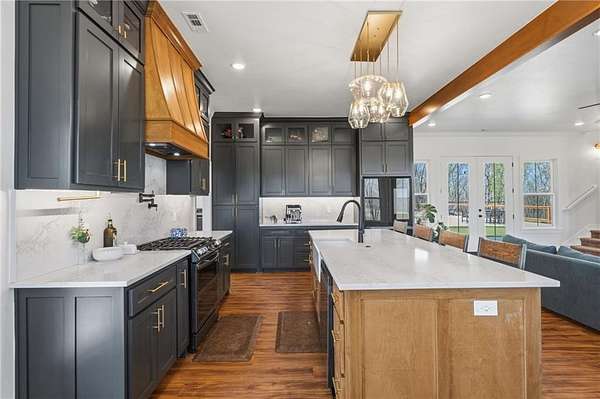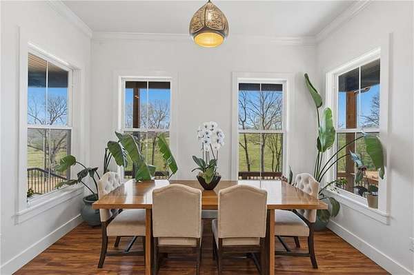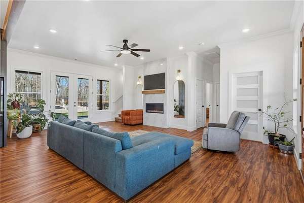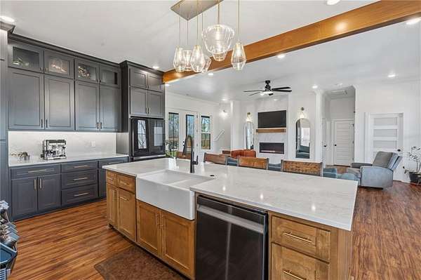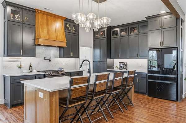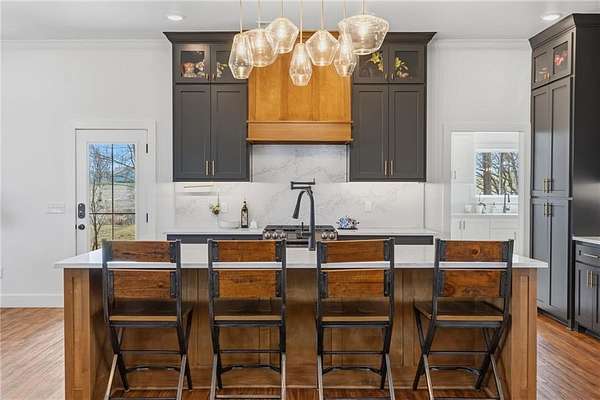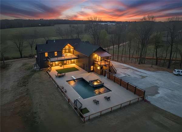 Luxurious single family residence, an absolute masterpiece crafted with top tier materials in 2023, has just unveiled its charms at 21665 Griggs RD, Springdale, Arkansas. The kitchen, where culinary dreams take flight, features a magnificent large kitchen island perfect for lively gatherings, complemented by a stylish kitchen bar and a custom range hood that stands as a work of art above the stovetop. Gleaming stone countertops and classic shaker cabinets, adorned with elegant crown molding, provide both beauty and functionality, all tied together with a charming backsplash and a convenient kitchen peninsula. Step into the living room, a haven of comfort and sophistication, where a cozy fireplace invites relaxation and built-in shelves offer perfect display space for your treasured collections. The majestic beamed ceiling and refined crown molding add a touch of grandeur, creating an atmosphere of refined leisure. Only 4 minutes from the new 612 Corridor, providing quick access to all of NWA.