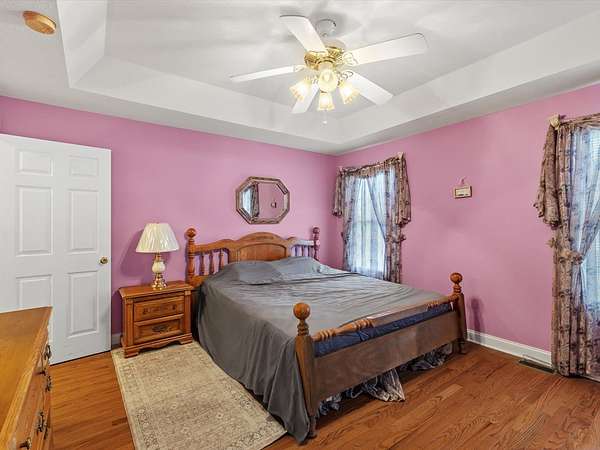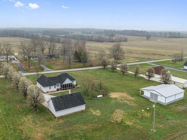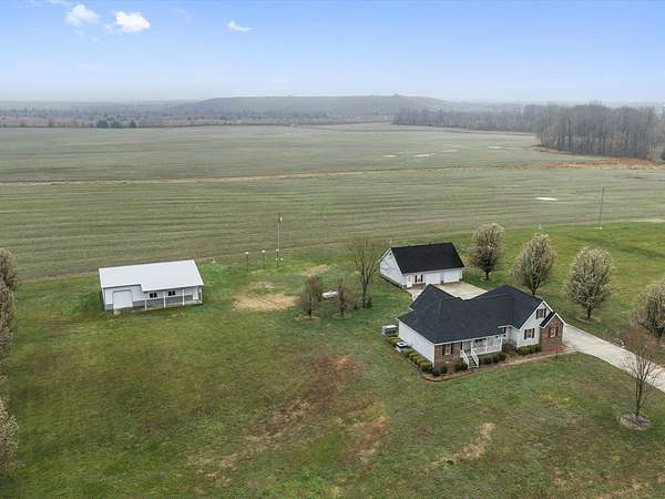 New on the market is this truly one-of-a-kind property offering space, versatility, and comfort in every direction. Sitting on a generous tract with two additional 1-acre lots included, this listing provides room to grow, build, or simply enjoy the privacy. The property features an impressive 5040 pole barn—ideal for equipment storage, hobby space, or anyone needing substantial workshop capabilities. In addition, there's a 4030 detached garage complete with an office area that can easily double as a family room, studio, or recreational space. A floored attic above provides even more storage options. The home itself is warm, inviting, and beautifully finished. Hardwood flooring adds both durability and timeless appeal. Trey ceilings highlight the craftsmanship and add architectural character to the main living spaces. Walk-in Tub. The upper level includes floored storage. Call Chuck for more info 270-836-9090