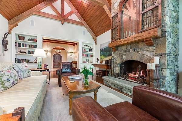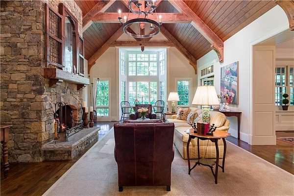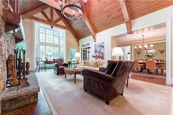 It is hard to imagine a more warm, inviting home than this hilltop gem in the Paces neighborhood. The forested lot creates a secluded oasis for your family. This sale includes two lots of record: 2167 W Wesley (2.44 acres) with the home and an adjacent parcel at 2425 W Wesley (2.07 acres). The total acreage includes 4.51 acres and you may choose to keep this expansive property to yourself, or the option exists to sell/build a separate home at 2425 W Wesley if desired. These spectacular private lots are located at the "end" of West Wesley, one of the most serene locations in all of Buckhead. Level backyard lawn and lovely seasonal gardens. A screened living and dining area with a wood burning fireplace enhance the indoor/outdoor lifestyle. Room to add a pool! MAIN - Superb craftsmanship and natural wood accents are found throughout. Through an arched front door off the main foyer is a cozy gentleman's study lined with warm Pecky Cypress paneling and arched French doors to the front yard. The show-stopping great room features a dramatic vaulted wood ceiling and one of 5 fireplaces! Access dining, kitchen, keeping room, screened porch & primary bedroom along a long hallway lined with graceful arches. The lovely light-filled kitchen is full of character and charm with custom white cabinets, matte black stone counters, massive island, generous walk-in pantry, and a light-drenched breakfast area. A really beautiful stone 2-sided fireplace has a Scandanavian brick firebox for excellent heat distribution in the kitchen and keeping room. The comfortable keeping room flows into a generous screened porch with living and dining space that takes full advantage of the wooded views. Enjoy this fireside indoor-outdoor space year 'round. Keep things tidy & organized with a large mudroom off the 3-car garage, a home management office, spacious walk in pantry, laundry room and even extra storage for seasonal items and small appliances. A rear staircase to access the upstairs rec room and bedroom/bath above the garage wing is located here. Primary Bedroom - The MAIN LEVEL primary bedroom suite occupies its own wing! The large yet warm bedroom has a cozy fireside sitting area, and access to a private patio. The bath has separate walk-in closets, separate vanities, separate water closets, and a double shower. UPPER - At the top of the main stairs is a huge game room plus a home theater. One of the 4 spacious upstairs bedrooms is a second primary bedroom with a massive walk in closet and bath. The upper level of the garage wing features a 2nd HUGE bonus room. 2nd laundry room, and generous closets and so much storage throughout - literally everywhere! As you can see, this home is very special both inside and out - the perfect secluded retreat while close to all that Buckhead and Vinings has to offer! Also included is ownership in the 13-acre riverfront nature preserve across the street. You and your family will have many opportunities to enjoy and explore nature, yet its only minutes from the premier private schools and the best that Buckhead and Vinings have to offer!