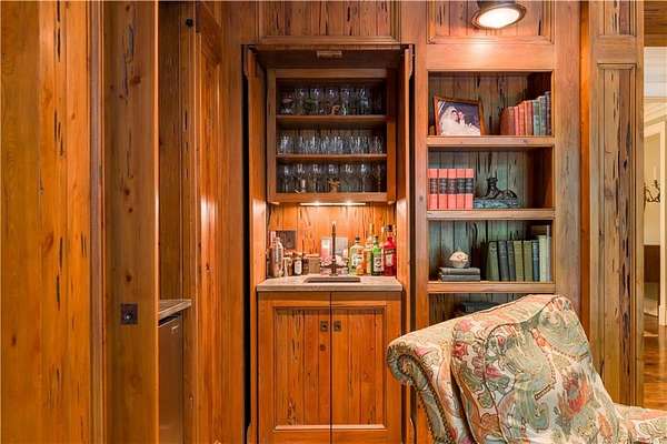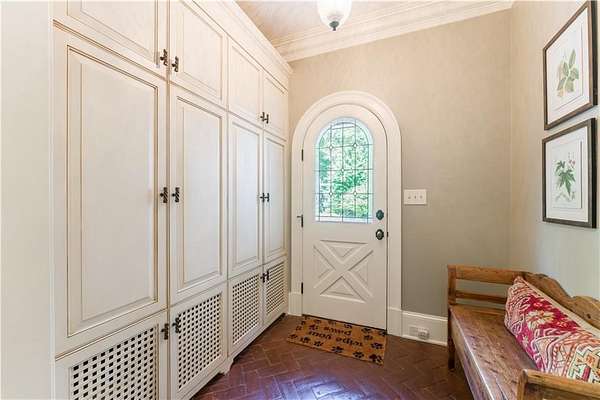 Level backyard lawn and lovely seasonal gardens. A screened living and dining area with a wood burning fireplace enhance the indoor/outdoor lifestyle. Room to add a pool! MAIN - Superb craftsmanship and natural wood accents are found throughout. Through an arched front door off the main foyer is a cozy gentleman's study lined with warm Pecky Cypress paneling and arched French doors to the front yard.