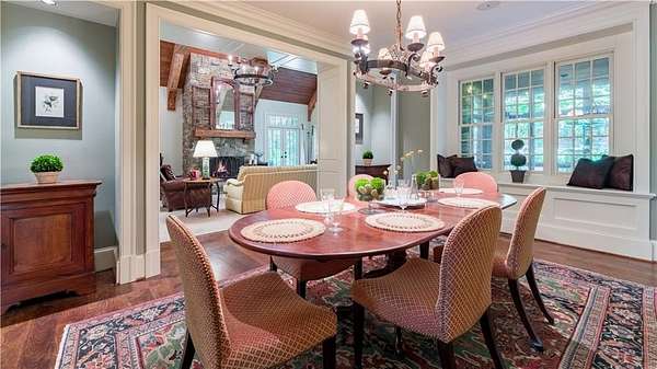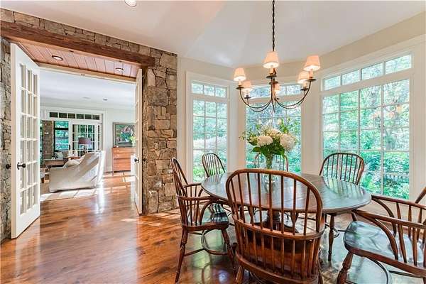 The comfortable keeping room flows into a generous screened porch with living and dining space that takes full advantage of the wooded views. Enjoy this fireside indoor-outdoor space year 'round.