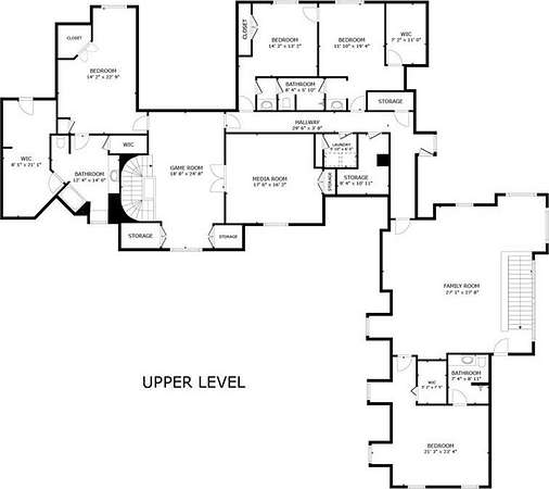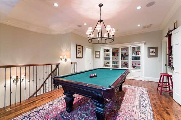 UPPER - At the top of the main stairs is a huge game room plus a home theater. One of the 4 spacious upstairs bedrooms is a second primary bedroom with a massive walk in closet and bath.