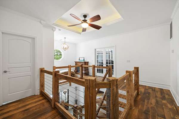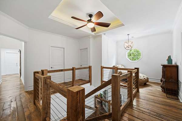 Exquisite custom estate nestled on 3.59 tranquil acres within a serene neighborhood offering exclusive riding trails for horses and ATVs. This elegant 5-bedroom, 3.5-bath residence spans 4,133 sq ft and showcases stunning reclaimed hardwood floors and bespoke finishes throughout. The gourmet chef's kitchen features dual refrigerators and an expansive layout perfect for sophisticated entertaining. A fully appointed mother-in-law suite provides refined multigenerational living, complemented by dual laundry rooms on each level for ultimate convenience. Abundant storage includes a remarkable 1,200 sq ft walkout attic space with endless potential for a luxurious finished living area. Experience unparalleled privacy, timeless craftsmanship, and exceptional versatility in this rare and distinguished offering.